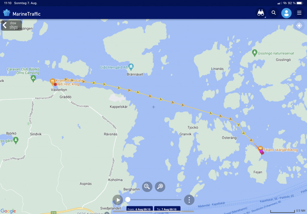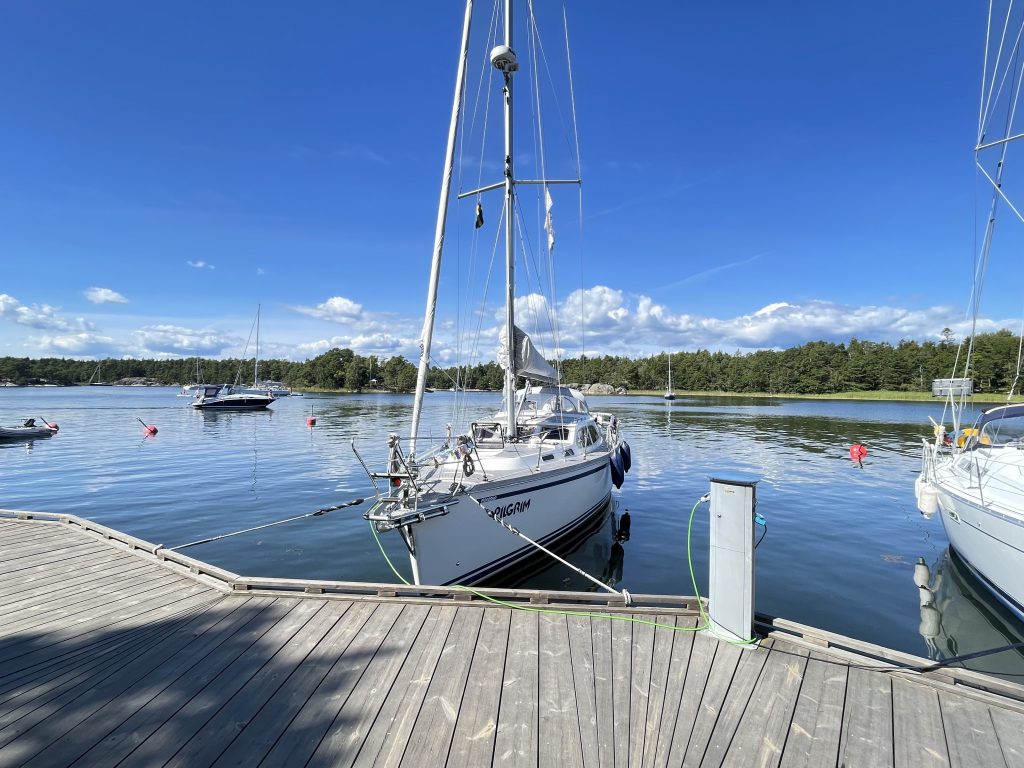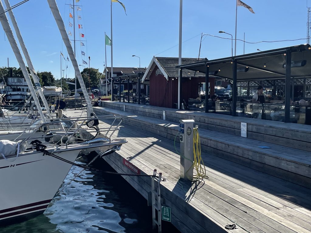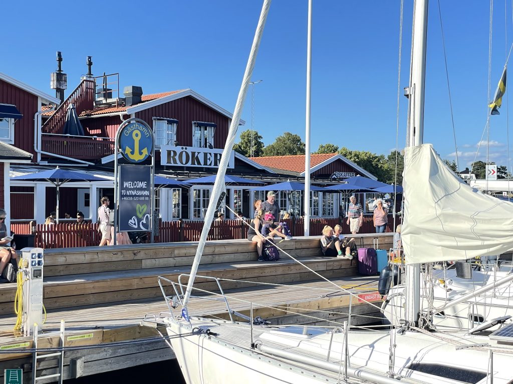 In Nynäshamn ist unerwartet viel Platz und die Hafengebühr noch auf Hochsaison-Niveau: wir bezahlen doppelt so viel wie Mitte Mai – zur Vorsaison. Aber es ist immer wieder schön hier und wir reservieren uns gleich einen Platz im Restaurant „Kroken“ direkt vor unserem Liegeplatz. Zora + Lutz kreuzen auch rechtzeitig auf, wobei kreuzen wörtlich zu nehmen ist. Sie waren heute ähnlich ausdauernd wie Ulli gestern (und heute vermutlich auch wieder).