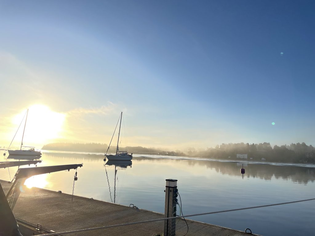 Wir besetzen anschließend die „Sonnenuntergangs-Bank“ und genießen die letzten wärmenden Strahlen. Ein schöner Tag neigt sich dem Ende und wir sind froh, am Steg festgemacht zu haben. Auf unseren Liegeplatz scheint die Sonne nämlich deutlich länger, als mitten in die Bucht, wo die Ankerbojen ausgebracht sind. Die um die Bucht stehenden Bäume geben dort schon viel eher reichlich Schatten und die dort festgemachten Schiffe haben schon seit einer Stunde keine Sonne mehr. Alles richtig gemacht! … hätten wir uns allerdings auch dran erinnern können… wir waren ja schon mal hier.