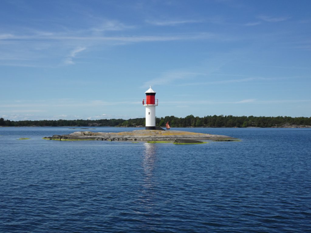 Von weitem sehen wir noch Spårö Båk, einen ehemaligen Leuchtturm und heutiges Denkmal, der mit seinen imposanten Ausmaßen (Gebäude 26m hoch) und seiner Lage auf einem 38m hohen Berg eine der majestätischsten Seemarken in ganz Schweden sein soll. Mit seinen im unteren Bereich 2m dicken Wänden hält er seit 1777 stärksten Stürmen stand und dient auch heute noch als Sturmwarnstation. Etwas unterhalb liegt das Leuchtturmwärterhaus mit dem seit 1884 etwas unscheinbaren aber aktiven Leuchtturm.