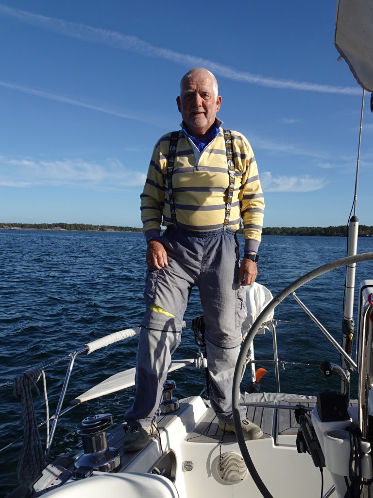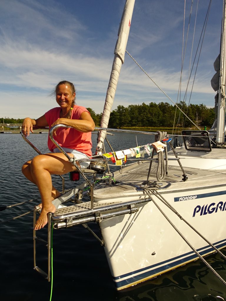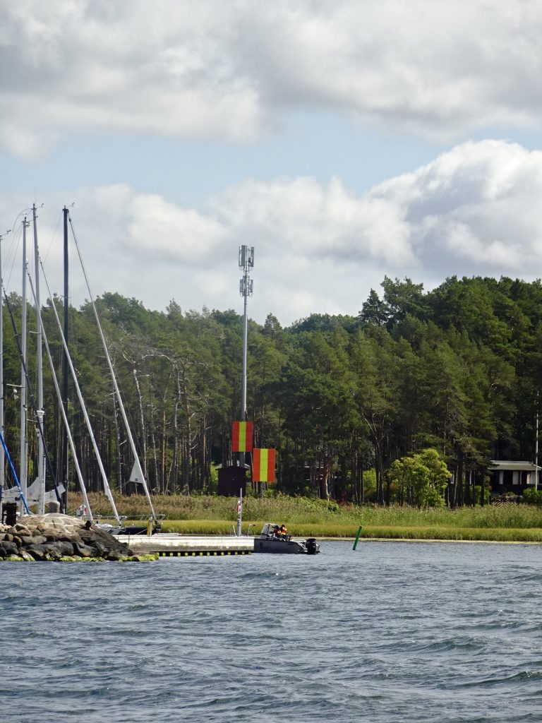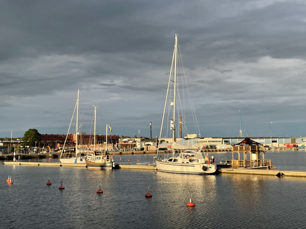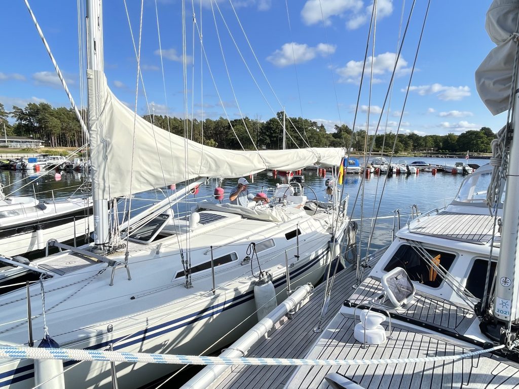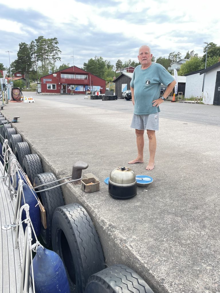 Ulli schleicht sich noch schnell vor dem (zu) kräftigen Wind nur unter Vorsegel nach Oskarshamn. Wir können ihm die Leinen annehmen, was es für ihn als Solosegler beim Anlegen schon deutlich leichter macht. Er erzählt uns dann bei einem Einlaufdrink (wir bekommen netterweise auch einen) die Geschichte seines gestrigen Erlebnisses beim Anlegen. Da hätten wir gerne Mäuschen gespielt. Aber manchmal läuft eben nicht alles rund. Vielleicht liest er ja diesen Bericht und gibt einen launigen Kommentar in seinen Worten – wäre schön.