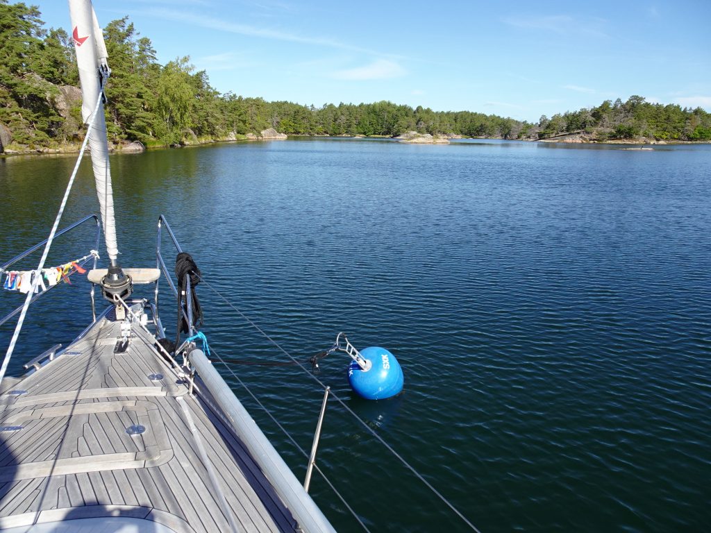 Unsere Fahrt so alleine durch die Schären ist einfach zu schön – auch in ungewohnter Hose – und wir können uns auch nach vielen Wochen im Schärengewimmel nicht sattsehen und trennen. Also stoppen wir schon nach kurzer Zeit wieder und machen in einer in der Saison vollbelegten Ankerbucht fest. Wir sind hier nur drei Schiffe – und eines davon haben wir in Gräddö schon mal getroffen – allerdings ist es diesmal nicht Ulli 😜. Wir alle liegen weit voneinander entfernt und so hat jeder für sich den Eindruck, alleine zu sein. In der Ferienzeit sieht man hier in Stora Vippholmen vor lauter Schiffen die Felsen nicht mehr. Gruselig! Aber heute… das muss man einfach genießen. Der nächste Ort läuft uns nicht weg.