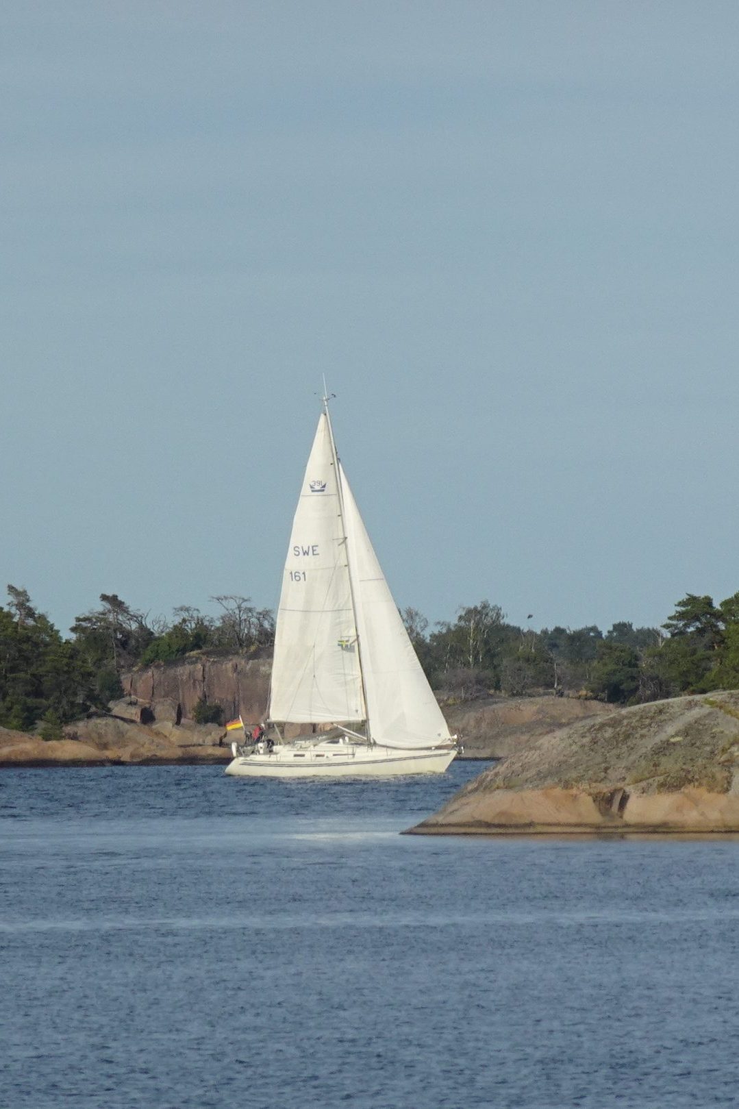 Kein Nebel, kein Regen, kein Wind… aber auch keine Sonne. Letzteres ist nicht der richtige Start in einen Sonntag (21.08.). Sollte sich der Sommer jetzt langsam dem Ende nähern? Wollen wir doch mal nicht hoffen. Trotzdem ist losbinden und ablegen angesagt, diesmal halt in langer Hose, da es sich auch merklich abgekühlt hat. Blöd – das hatten wir so nicht bestellt. Aber wenigstens der Wind hat ein Einsehen und kommt bald aus einer für unseren Wunsch-Kurs passenden Richtung. Wir segeln mit halbem, raumem, manchmal achterlichem Wind gemächlich durch die Schären und Kalli hat ordentlich zu tun: Segel weiter auf… Segel wieder dichter… wieder weiter auf… 😥 hinter jedem Inselchen kommt der Wind ein klein wenig anders und manchmal auch garnicht. Dann muss der Jockel dafür sorgen, dass Fahrt im Schiff bleibt. Unterwegs überfahren wir fast einige Kegelrobben, deren massigen Köpfe dicht neben dem Fahrwasser auftauchen. Diese großen Wasser-Raubtiere sind schon imposant anzuschauen und deutlich größer als die meist anzutreffenden Seehunde. Diese sind im Vergleich zu Kegelrobben eher schlanker und leichter und haben einen rundlichen Kopf. Die Kegelrobbe ist deutlich schwerer und größer als der Seehund und hat die typische namengebende Kopfform. Und wir sehen auch mal wieder Seeadler, die ihre Kreise drehen und sich in den Himmel zwirbeln und das just zu dem Zeitpunkt, als sich auch die Sonne langsam gegen die Wolken durchsetzt. Es wird heller und schöner und wärmer und sommerlicher. Na bitte… geht doch 👏👏