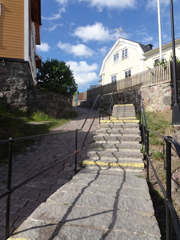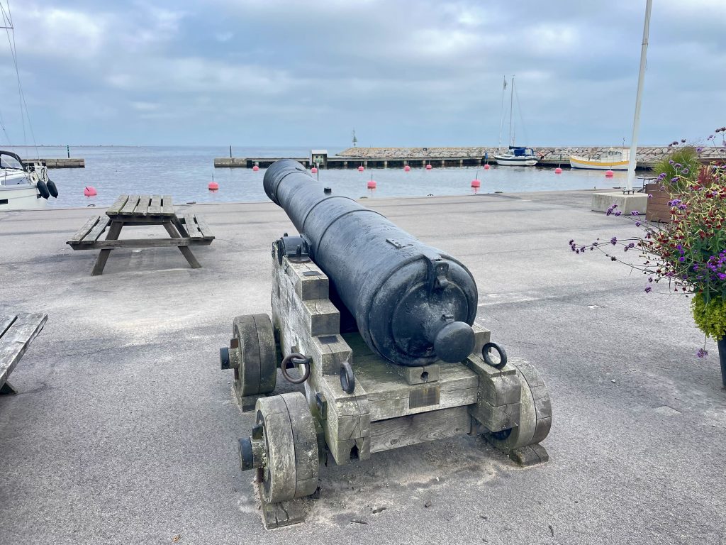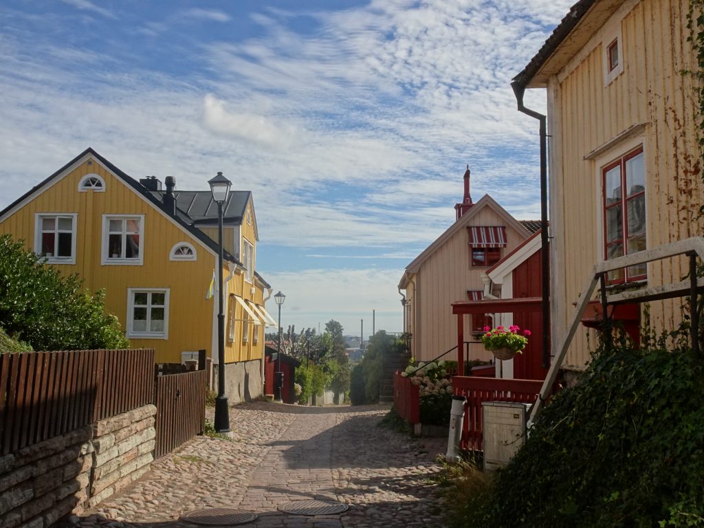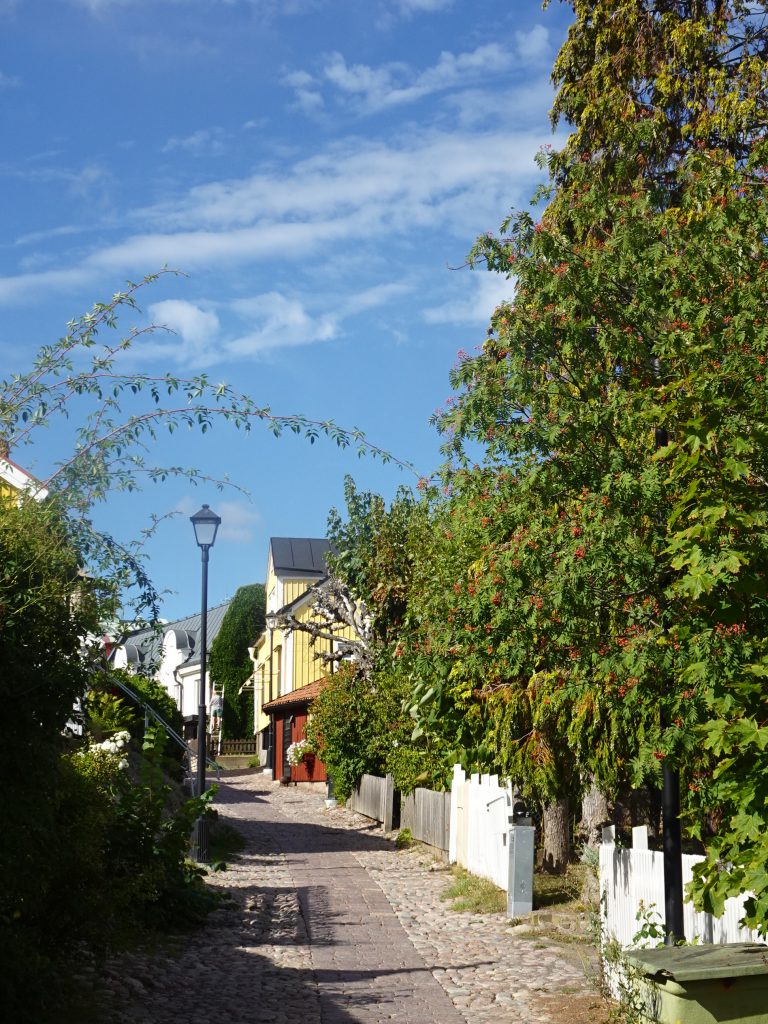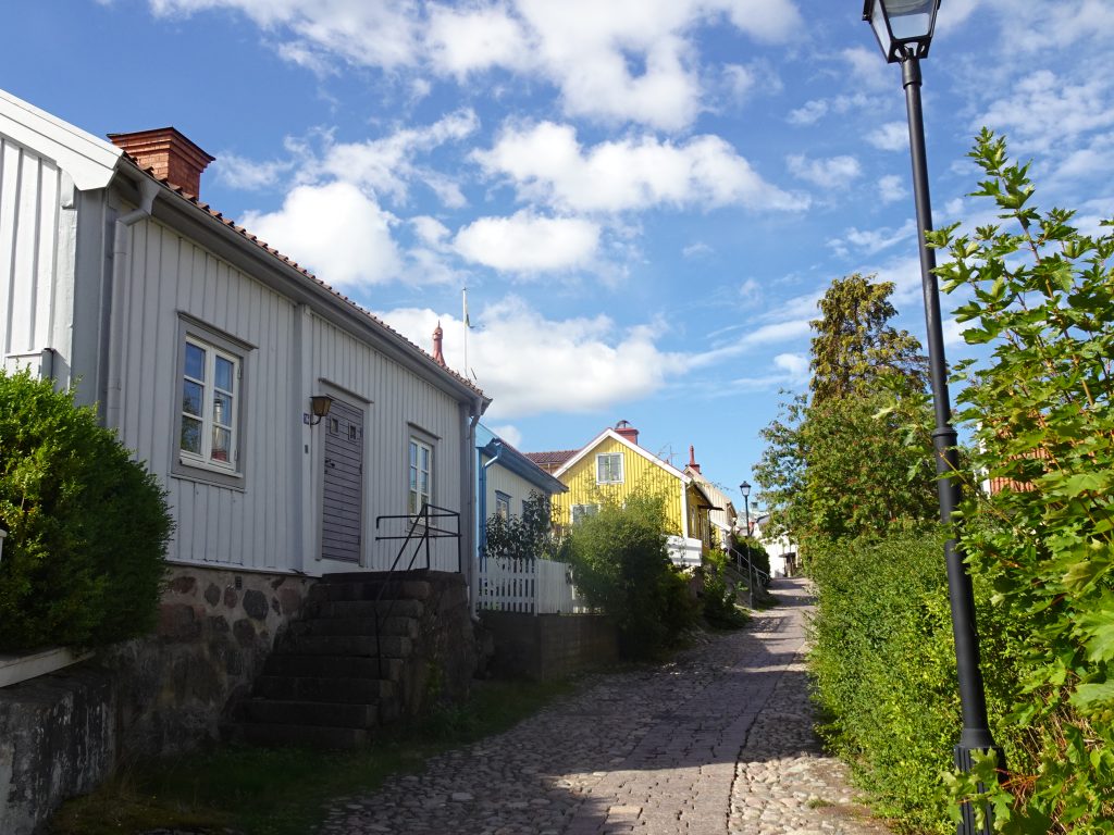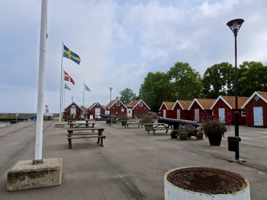 Und nun sind wir hier – seit 12 Jahren das erste Mal wieder. Die im Hafen neben den schwedischen wehenden dänischen Flaggen sollen wohl ein wenig an die Vergangenheit erinnern. Leider macht der Rundgang durch den Ort bei dem immer noch trüben, aber irgendwie unangenehmen Wetter nicht wirklich Spaß. Aber die alte Stadtmauer und auch viele ungewöhnlich breite Steinmauern zwischen den Grundstücken sind schon bemerkenswert. Schade, mit Sonne hätte das alles viel hübscher ausgesehen. Aber immerhin sind wir die letzten Tage ein gutes Stück gen Heimat vorangekommen. Jetzt muß uns das Wetter nur bitte weiter mit östlichen Windrichtungen beglücken. Und etwas Sonne darf gerne wieder dabei sein.