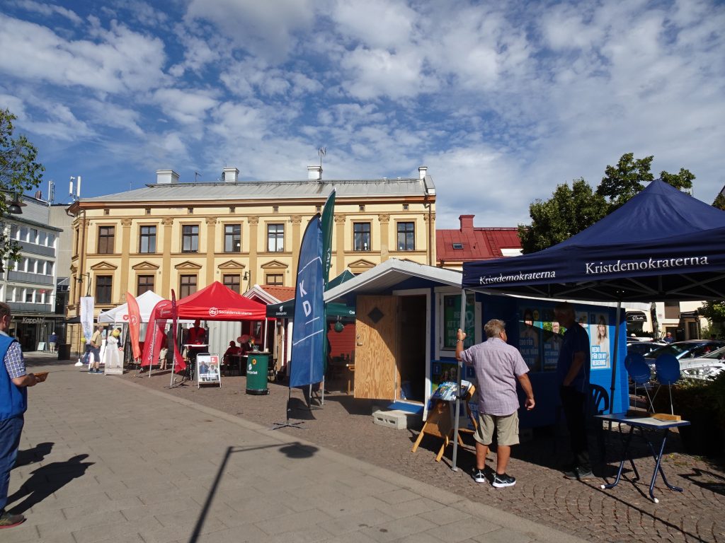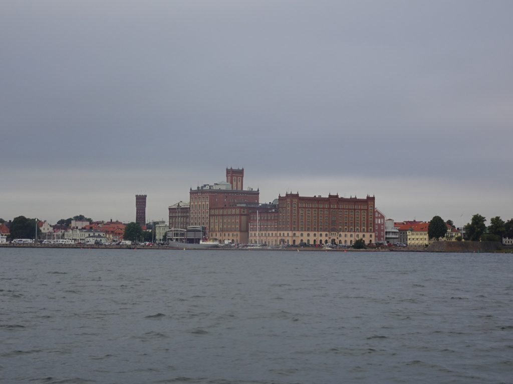 In Oskarshamn wollen wir in den Stadthafen, da uns der Yachthafen zu weit außerhalb der Stadt liegt und mal wieder Vorräte aufgefüllt werden müssen. Also den großen Fähranleger passiert – ab hier gibt es eine Fährverbindung nach Gotland – an der großen Station der Küstenwache vorbei und fast bis ins Zentrum gefahren. Dort ist, bis auf einige große und häßliche Dauerlieger-Motorschiffe, alles leer. Das macht die Liegeplatzsuche aber nicht einfacher. Zuerst machen wir mit Heckboje fest, wie es vorgesehen ist. Doch es steigt sich einfacher von und an Bord, wenn man längsseits liegt – meine Zerrung wird zwar langsam besser, aber immer schön vorsichtig sein. Also kurzerhand alles wieder los und längs angelegt. Das kostet in der Saison extra – schließlich nimmt man viel Platz ein. Doch heute ist das OK. Ist ja kaum jemand da. Oder sagen wir mal so: beim bezahlen am Automaten können wir den Betrag für längs anlegen irgendwie nicht auswählen🤷♀️🤷♂️.