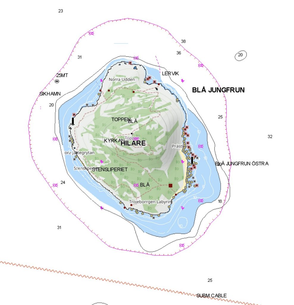 Der Name der Insel erscheint erstmals 1410 in historischen Werken, allerdings noch als Blåkulla (blauer Hügel) und galt lange als Hexentreffpunkt und Zauberstätte… ein bisschen, wie der Blocksberg im Harz mit vielen düsteren Geschichten. 1555 wurde der Name dann in Blå Jungfrun (Jungfrau) geändert, um kein Unglück anzuziehen. Das Profil der fast kreisförmigen Insel (ca. 1100 x 800m) ist relativ symmetrisch und ihre Granitkuppel steigt von der Küste schnell auf eine Höhe von 86m an – vom Meeresboden aus gemessen 130m. Sie ist der höchste Punkt im Umkreis von vielen Kilometern, sodaß sie an klaren Tagen aus großer Entfernung zu sehen ist. Blå Jungfrun ist als Nationalpark klassifiziert. Sie darf zwar betreten werden – es gibt sogar Ausflugsboote von Oskarshamn und Byxelkrog/Öland – aber Ranger kontrollieren, dass hier nicht übernachtet wird.