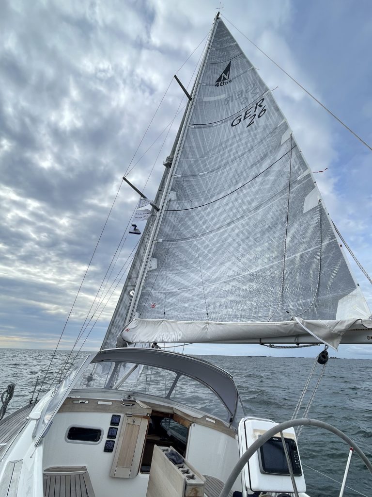 Am späten Nachmittag kommen noch zwei weitere Segler in die Bucht und werfen ihren Anker. Einige wenige segeln auch dran vorbei und, wir glauben es kaum, aber wir erkennen eines der an der Bucht vorbei kreuzenden Schiffe: Ulli ist mit seiner Inkognito wiedermal tapfer und ausdauernd unterwegs. Er hat den späteren und für ihn passenden Wind gewählt – also quasi die Spätschicht übernommen. Wir übernehmen ja meist die Frühschicht ⏰🥱