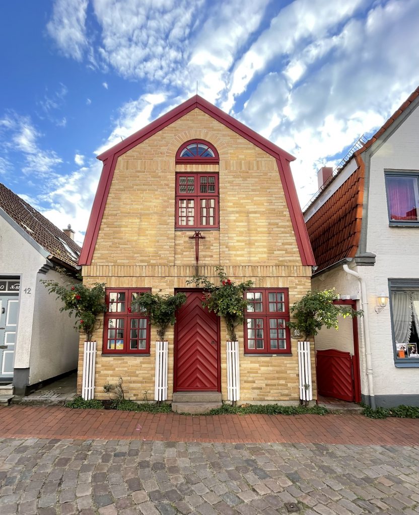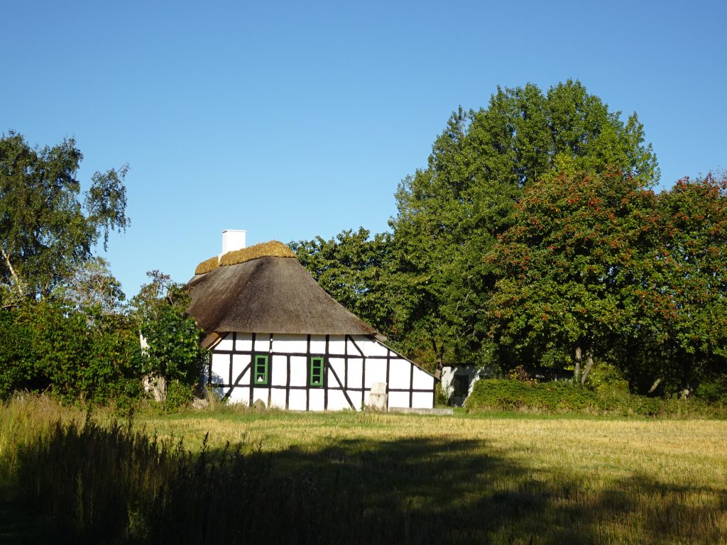 Am Montag (19.09.) ist die Sonne zurück und der gestern wegen Regen ausgefallene Spaziergang über die Insel Drejø wird nachgeholt. Wobei ich lieber das rostige Hafenfahrrad nehme… fährt gut, auch wenn es nicht so aussieht. Drejø liegt mitten im südfünischen Inselmeer. Das 70-Einwohner-Dorf mit schönen Fachwerkhäusern und mehreren Bauernhöfen ist etwas für Naturliebhaber. Es soll sogar weiße Damhirsche geben. Bis ins 16. Jahrhundert mussten die Bewohner Drejøs nach Ærøskøbing segeln, um in die Kirche zu gehen. Erst nach einigen tragischen Schiffsunglücken erteile König Christian III. die Erlaubnis, auf der Insel eine eigene Kirche zu bauen.