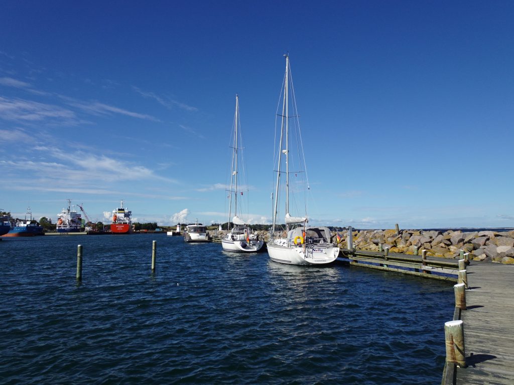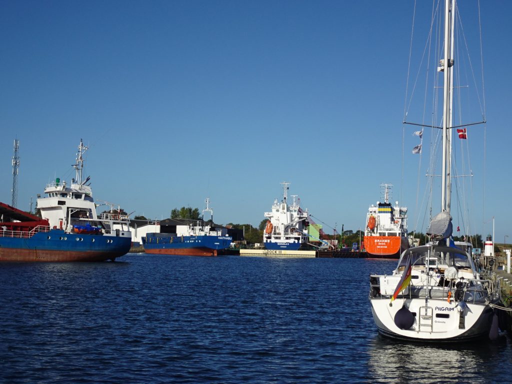 Gegen Mittag legen wir ab für einen kurzen Rutsch rüber nach Søby an der Nordspitze Ærøs. Der Wind passt einigermaßen und so haben wir eine zwar kurze, aber schöne Segeletappe bis vor die Hafeneinfahrt. Dort sind wir erstaunt, wie gut die örtliche Werft offensichtlich im Geschäft ist: so große Frachtschiffe haben wir hier noch nie liegen sehen. Doch der neben dem Werftbecken liegende Yachthafen ist groß und hat noch ein Plätzchen (auch mehrere) für uns frei.