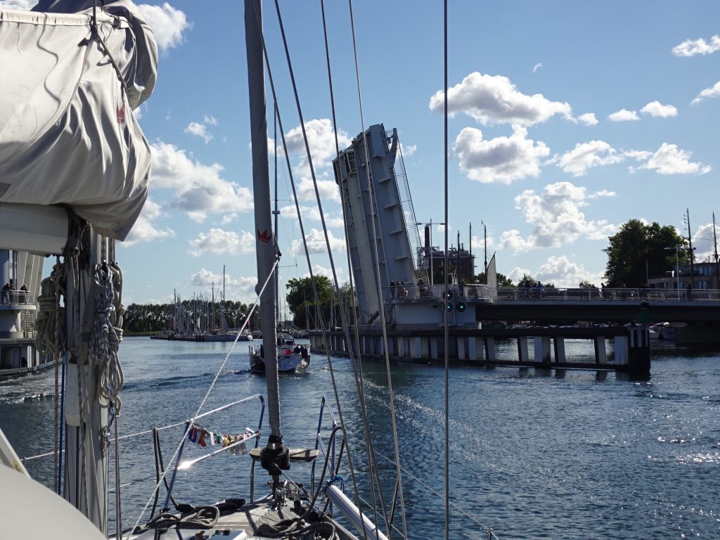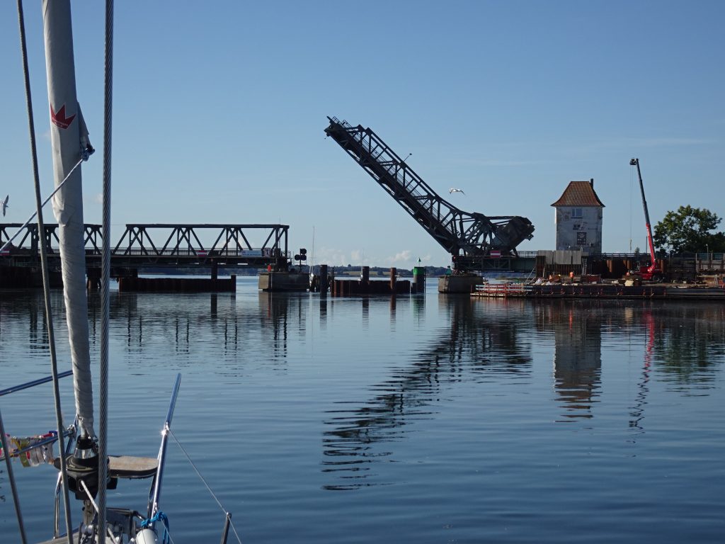 Vor der Einfahrt in die Schlei bergen wir die Segel und motoren gemütlich den Meeresarm der Ostsee hinauf. Unser Weg führt vorbei an dem fast verwaisten kleinen Hafen der Lotseninsel, direkt hinter dem Leuchtturm Schleimünde gelegen und vorbei an Maasholm, wo wir in den letzten Jahren immer festgemacht und schon die Segel fürs einwintern abgeschlagen haben. Da wir aber noch eine gute Woche in Schleswig sein werden, haben wir dort Zeit genug, ein passendes Wetterfenster abzuwarten, um die Segel bei wenig Wind einzupacken. Wir fahren heute also weiter bis nach Kappeln – unbedingt bis hinter die Brücke! Man weiß ja nie. Klappt sie oder klappt sie nicht. Mit ungewohnt wenig Gegenverkehr kommen wir mit nur drei weiteren Schiffen an die Kappelner Brücke… pünktlich zur Öffnung! Yep, die erste „Frühjahrs-Trauma-Brücke“ ist geschafft!