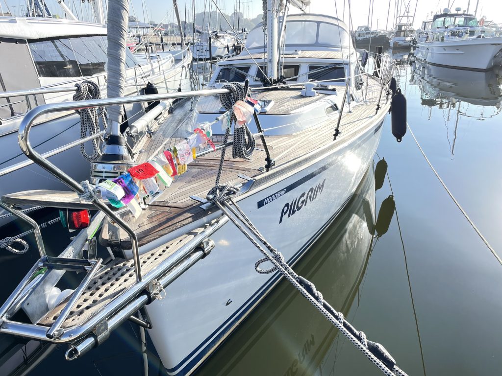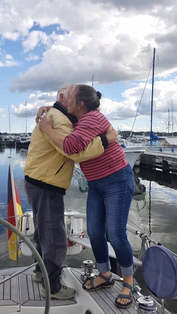 Im Hafen sieht man auch auf anderen Schiffen geschäftiges Treiben. Überall wird geräumt und geputzt… die Saison geht halt dem Ende entgegen. Aber früh morgens ist es erst ganz beschaulich. Wir können unseren morgendlichen Kaffee – wie während unserer Reise auch – zum richtig wachwerden genießen. Das Schiff schaukelt ganz sanft im leichten Wind, einige Enten schnattern um uns rum… das werden wir zu Hause vermissen. Und hoffentlich finden wir dort auch den richtigen Weg, wenn ggf. des nächtens mal ein Toilettengang ansteht. Mein Vater hat sich seinerzeit mal nach einem längeren Segelurlaub – glücklicherweise rechtzeitig – im Kleiderschrank wiedergefunden 😴🤭. Das Wiedereinleben wird sicher spannend. Wir freuen uns jedenfalls, endlich alle Freunde nicht nur wiederzusehen (mit einigen haben wir ja immer mal über Facetime gesprochen), sondern auch mal wieder in den Arm zu nehmen.