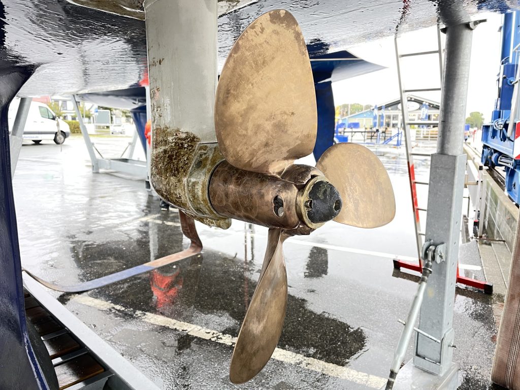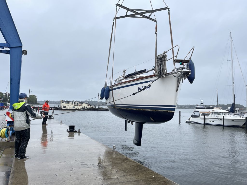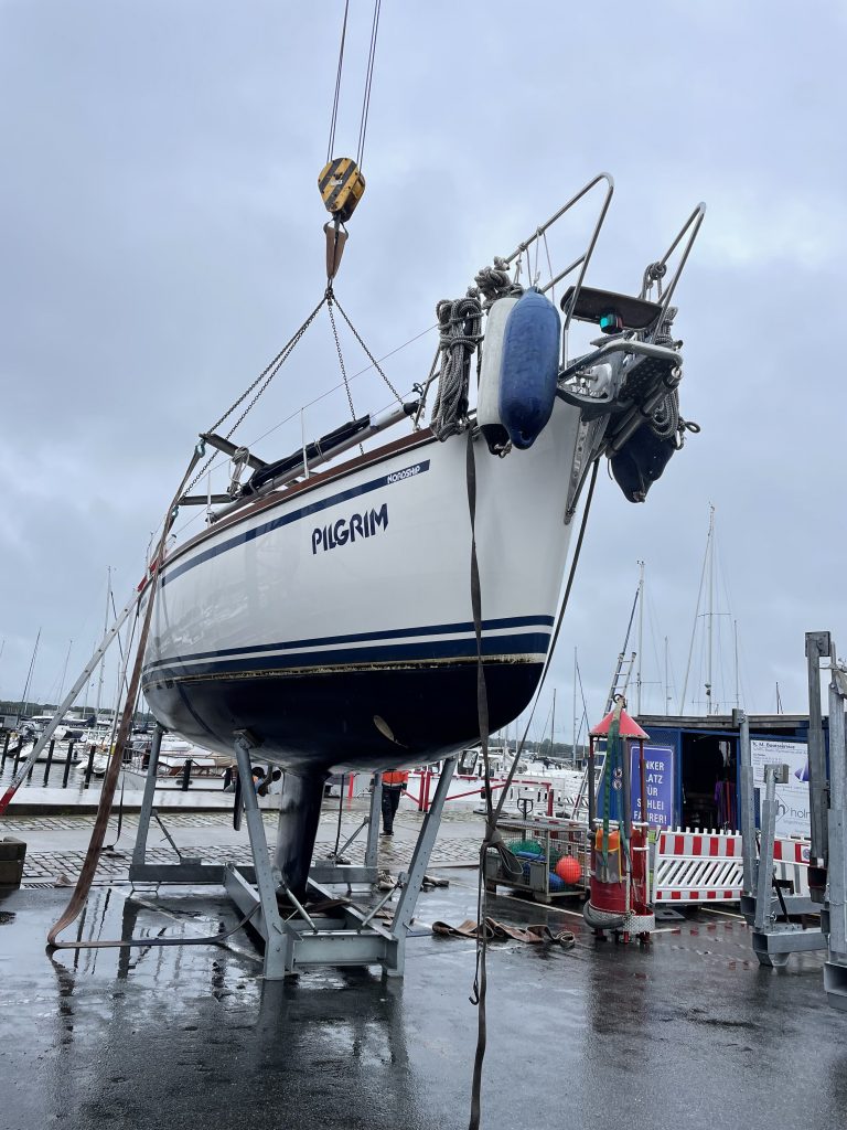 Wir können uns mit der Werft so absprechen, dass wir beim Auswassern dabei sind. Das haben wir gehofft, denn nach so langer Zeit in nördlichem Ostsee-Wasser wollen wir nicht nur auf Fotos sehen, wie unser Unterwasserschiff so ausschaut. Und das sieht deutlich besser aus, als befürchtet. Der Rumpf ist nur etwas schleimig, was aber bedeutet, dass der Unterwasseranstrich am Rumpf gut wirkt und keine Organismen an ihm Halt finden. Auch keine einzige Seepocke ist zu finden, was allerdings auch daran liegt, dass wir so lange im Norden der Ostsee unterwegs waren. Dort ist der Salzgehalt annähernd Null und das mögen Seepocken überhaupt nicht.