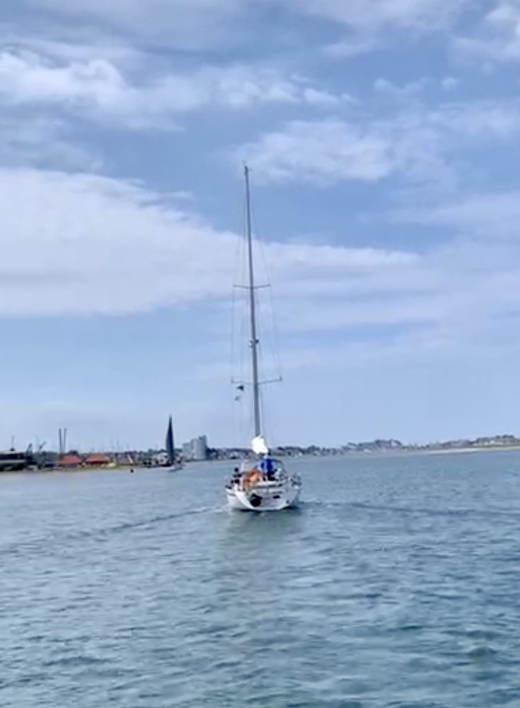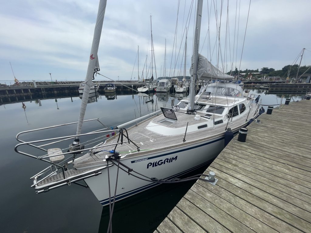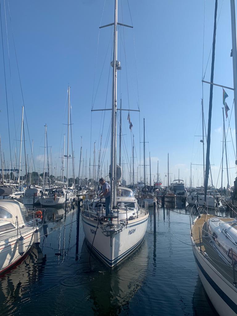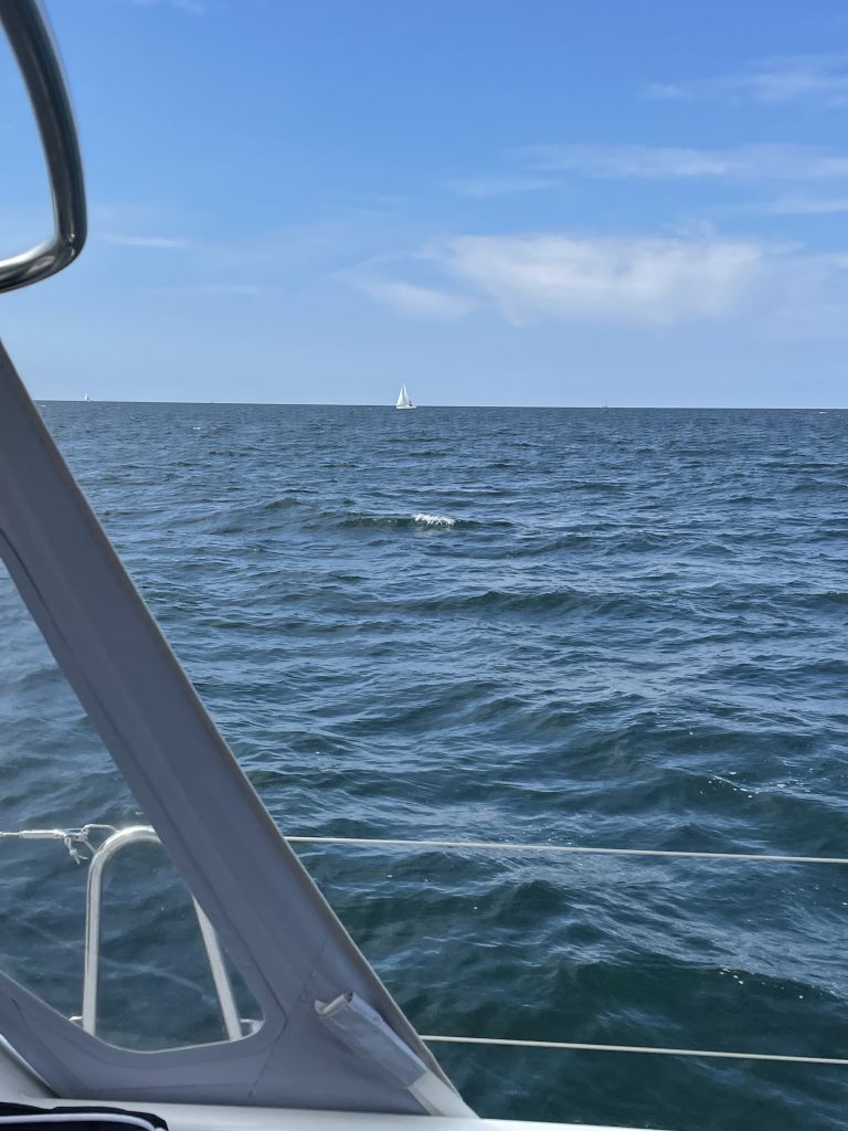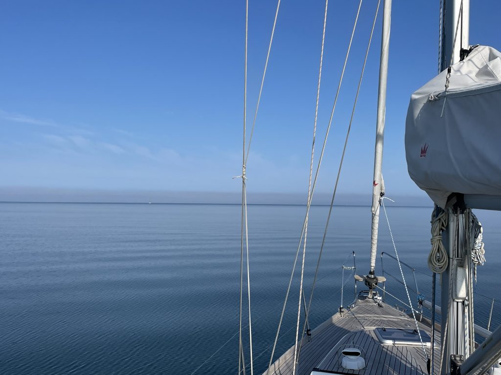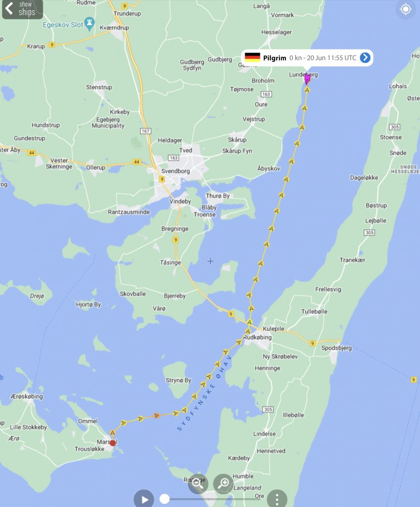 Danae kommt, ebenfalls deutlich gerefft, gut durch den Wind und heile in Spodsbjerg an… Valéria macht sich gut… die Seebeine wachsen! Den Tag lassen wir gemütlich ausklingen und sammeln Energie für morgen: eine längere Etappe (ca. 38sm) bis nach Heiligenhafen liegt vor uns. Doch auch da spielt der Wind wieder mit und wir können fast die gesamte Stecke wunderbar (und ungerefft) segeln. Gleichmäßiger Wind und ganz ruhiges Wasser läßt Pilgrim – und auch Danae – einfach so dahingleiten. Zu beiden Seiten sehen wir viele andere Segler, die sich offensichtlich die gleiche Windvorhersage angeschaut haben wie wir und nun einen größeren Hafen – für einen längeren „Wind-Aufenthalt“ – aufsuchen. Unterwegs passieren wir wieder den Kiel-Ostsee-Weg und auch jetzt passt es mit den querenden Frachtern gut.