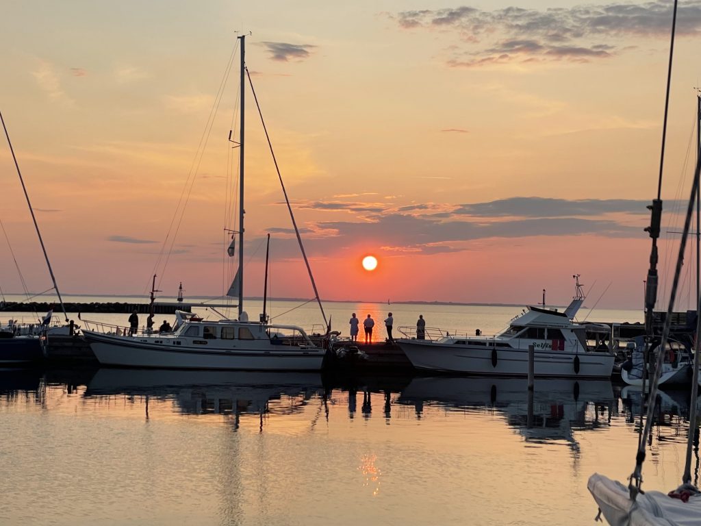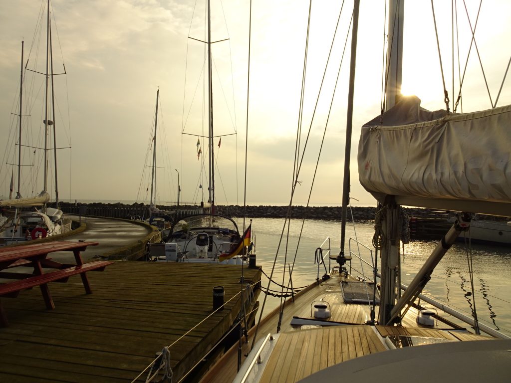 Unser Freund Ferdi reserviert uns – wiedermal – zwei Liegeplätze und so können wir entspannt gen Heiligenhafen segeln. Am Abend haben wir uns ein leckeres Abschlußessen verdient. André schafft es irgendwie, kurzfristig einen Tisch bei „Tamatsu“ am Hafen zu reservieren und wir genießen das vorzügliche Essen.
