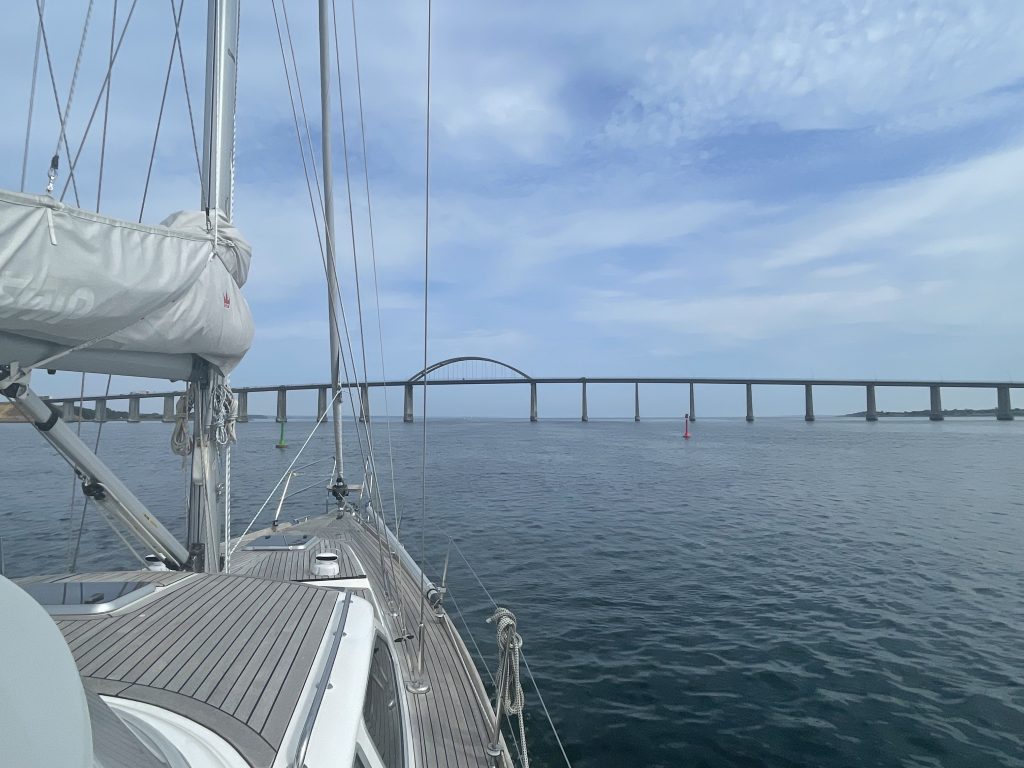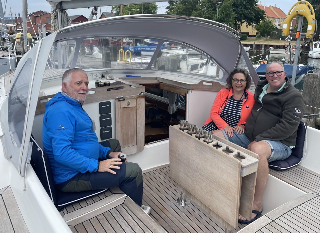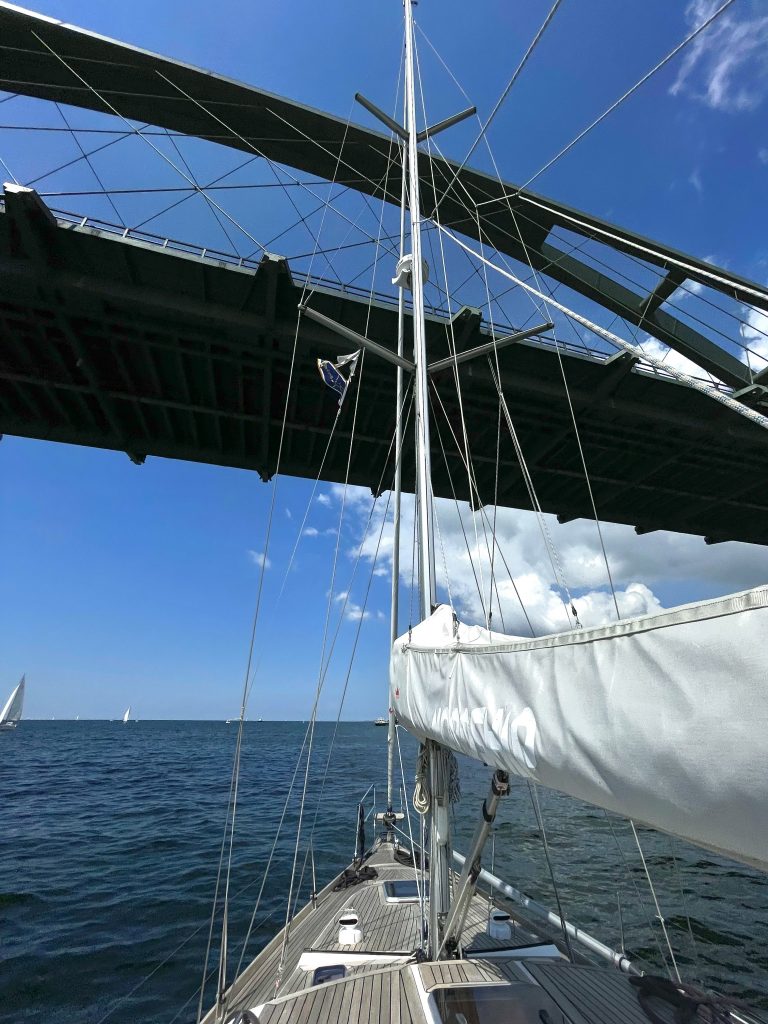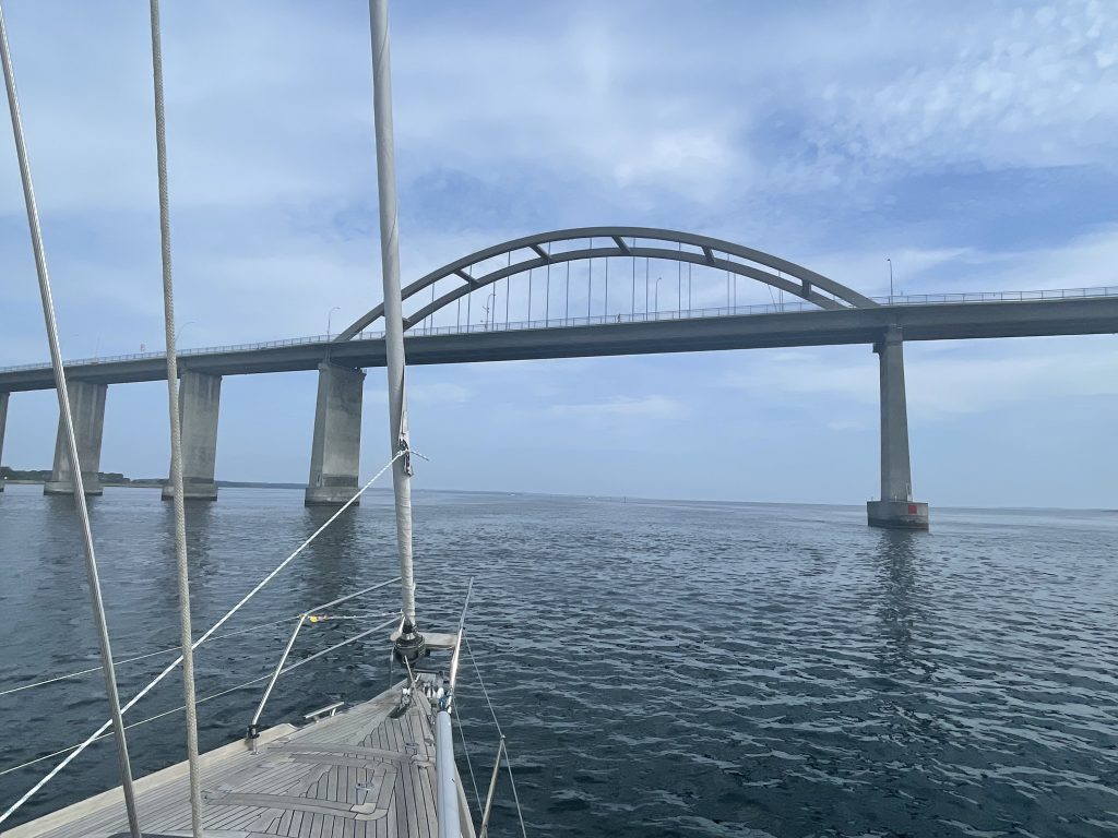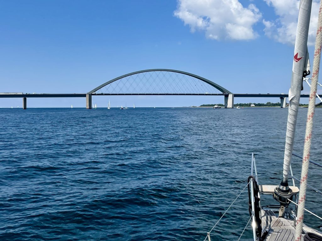 Da wir am Sonntag, 25. Juni, nur noch den Weg bis Grömitz auf unseren festen Liegeplatz vor uns haben, lassen wir es morgens ganz gemütlich angehen. Wobei… es ist um 09.00 Uhr schon so drückend warm, dass wir uns doch lieber alsbald auf den Weg machen. Unterwegs haben wir wenigstens Fahrtwind, der etwas erfrischt. Und nicht nur das: kaum haben wir die Fehmarnsund-Brücke passiert, wird das laue Lüftchen zu einem ganz passablen Segelwind. Wir bekommen einen Segeltag geschenkt, den es so nicht häufig gibt. Alles passt! Was für ein schöner Abschluß des diesjährigen ersten kleinen Törns „Langeland rund“, auch wenn er drei Tage länger geplant war. Wir hatten eine schöne Zeit als kleine Flotille und haben vielleicht ein wenig geholfen, dem weiblichen Teil der Danae-Crew den Spaß am Segeln und der dänischen Inselwelt zu vermitteln.
