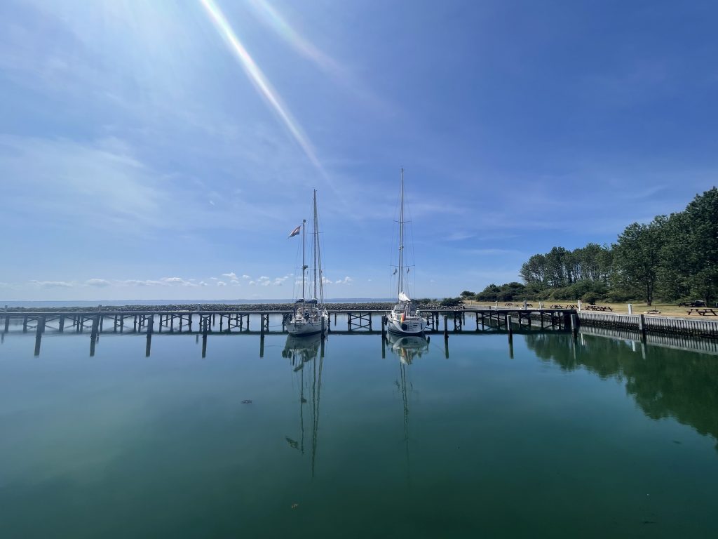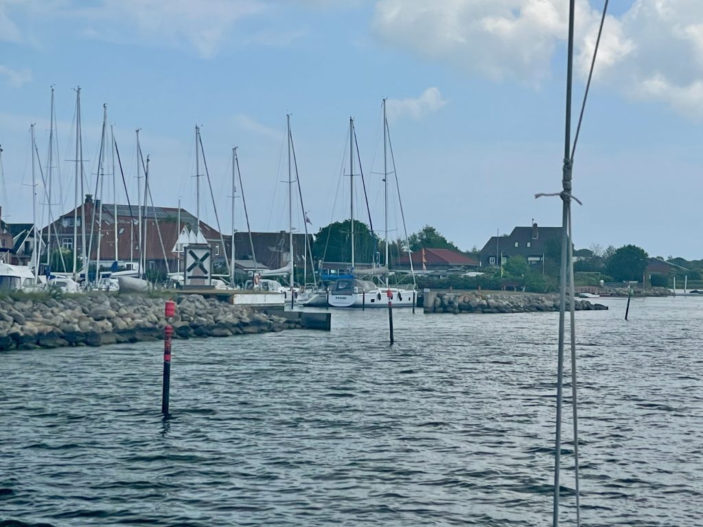 Am Samstag, den 17. Juni, starten wir unseren ersten kleinen Törn in diesem Jahr und das als kleine Flotille: gemeinsam mit „Danae“ wollen wir in die Dänische Südsee segeln. Valéria und André mit ihrer „Danae“ sind liebe Stegnachbarn aus Grömitz und sie wollen endlich mal Dänemarks Inselwelt erkunden. Zu Beginn heißt es allerdings, erst einmal den Dieseltank füllen, denn für die ersten Tage ist wenig Wind, dafür aber viel Sonne vorhergesagt. Es gibt deutlich schlimmeres und so tuckern wir gemeinsam nach Lemkenhafen, einem kleinen Hafen an der Südwestküste Fehmarns. Und da dieser niedliche Vereinshafen keine separaten Gästeplätze hat, rufe ich vorher beim Hafenmeister an. Sicher ist sicher.