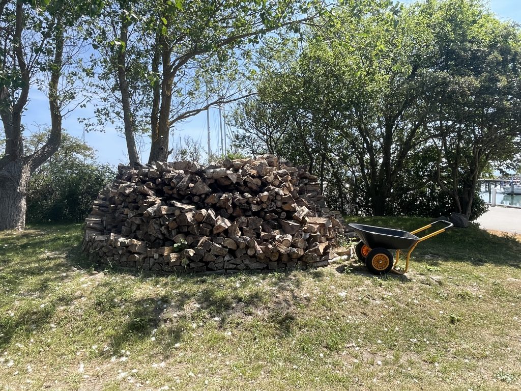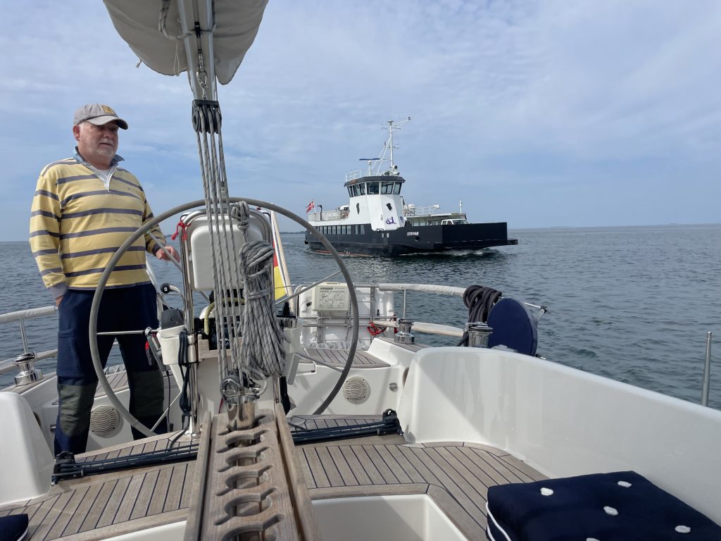 Um 05.50h klingelt der Wecker, um 07.00h ist Ablegen angesagt. Nach knapp 3 Stunden erreichen wir Omø, obwohl wir beim Überqueren des Langelandsbelt, der von viel Großschifffahrt befahren wird, erst einen großen Frachter passieren lassen müssen und dazu einen kleinen Schlenker gefahren haben. Alles kein Problem. Es gibt noch erstaunlich viele freie Plätze in dem kleinen Hafen. In der Hochsaison ist es hier pickepacke voll. Allerdings sind die vorgesehenen Liegeplätze mit Heckdalben zum festmachen doch recht kurz für uns – wir stehen gut 1,5m hinten raus und machen damit den Fahrweg zwischen den Stegen recht schmal. Wir legen uns daher nochmal um und machen doch lieber längs gegenüber dem Fähranleger fest. Pünktlich um 12h dreht der Wind auf die vorhergesagte Stärke auf und bestätigt die Windvorhersage: es bläst mit gut 6 Beaufort. Wiedermal die richtige Entscheidung getroffen.