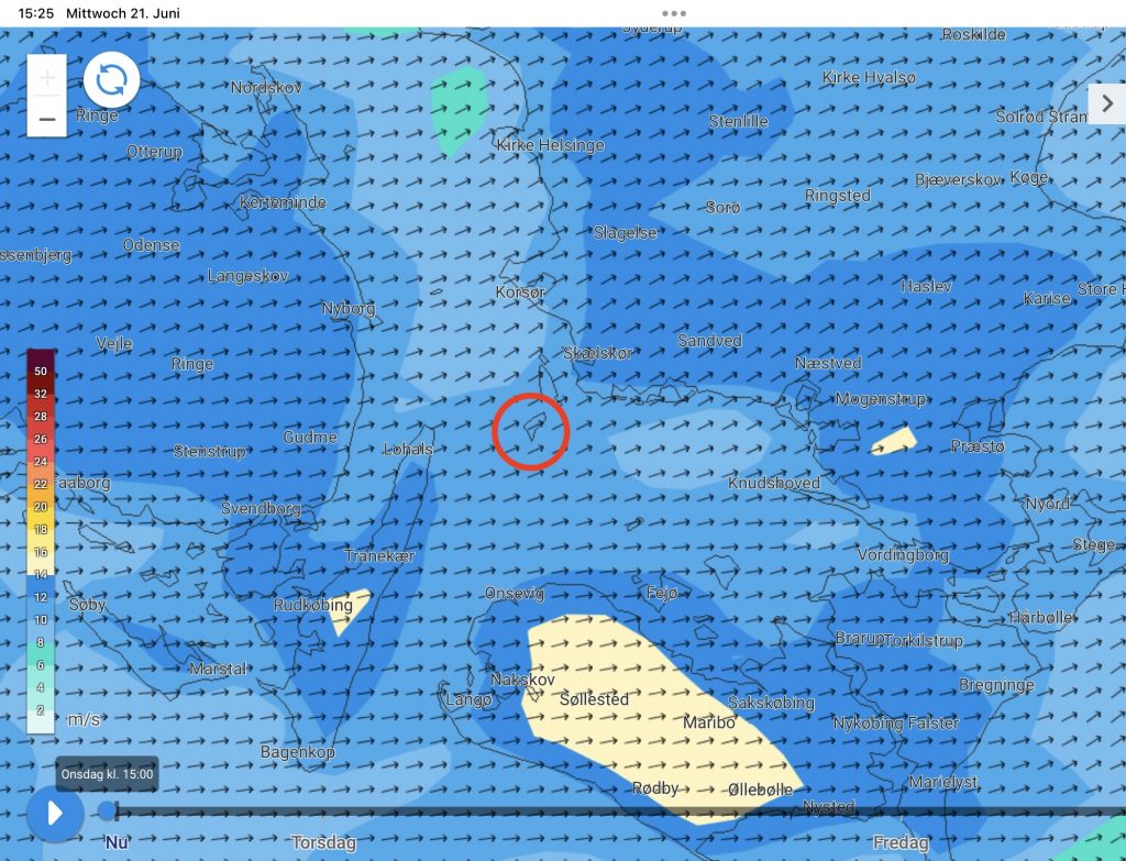 Am nächsten Tag (Freitag, 23.Juni) ist es, wie so oft beim segeln: morgendlicher Blick in die Windvorhersagen und anschließende Veränderung des Törnplans. Es ist halt, wie es ist. Wir wollten eigentlich dieses schöne Fleckchen Insel etwas länger genießen, der Wind gibt uns aber etwas anderes vor. In 2-3 Tagen soll es heftigen Wind aus Westen geben. Selbst, wenn er nicht ganz so heftig kommt, wie heute vorhergesagt, wäre es vermutlich zuviel für ein entspanntes segeln. Daher lieber jetzt (rechtzeitig) eine kleine Törnänderung bzw. Törnverkürzung einplanen und nicht womöglich in Gedser für 3 Tage einwehen.
