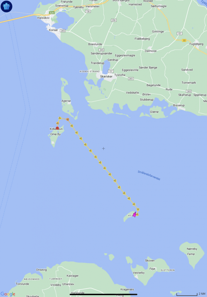 Am nächsten Tag, Donnerstag 22. Juni, rutschen wir schnell nach Vejrø rüber. Das war eigentlich schon am Vortag der Plan gewesen, doch wegen des Windes gegen mittag haben wir lieber umgeplant. Dann eben heute nach Vejrø, einer kleinen Privatinsel im Smålandsfahrwasser zwischen Seeland und Lolland. Die Insel umfasst nur eine Fläche von 1,6 km2 und weist eine weitgehend unberührte Natur auf. Die Fläche wird heute landwirtschaftlich genutzt und derzeit von nur 4 Personen dauerhaft bewohnt.