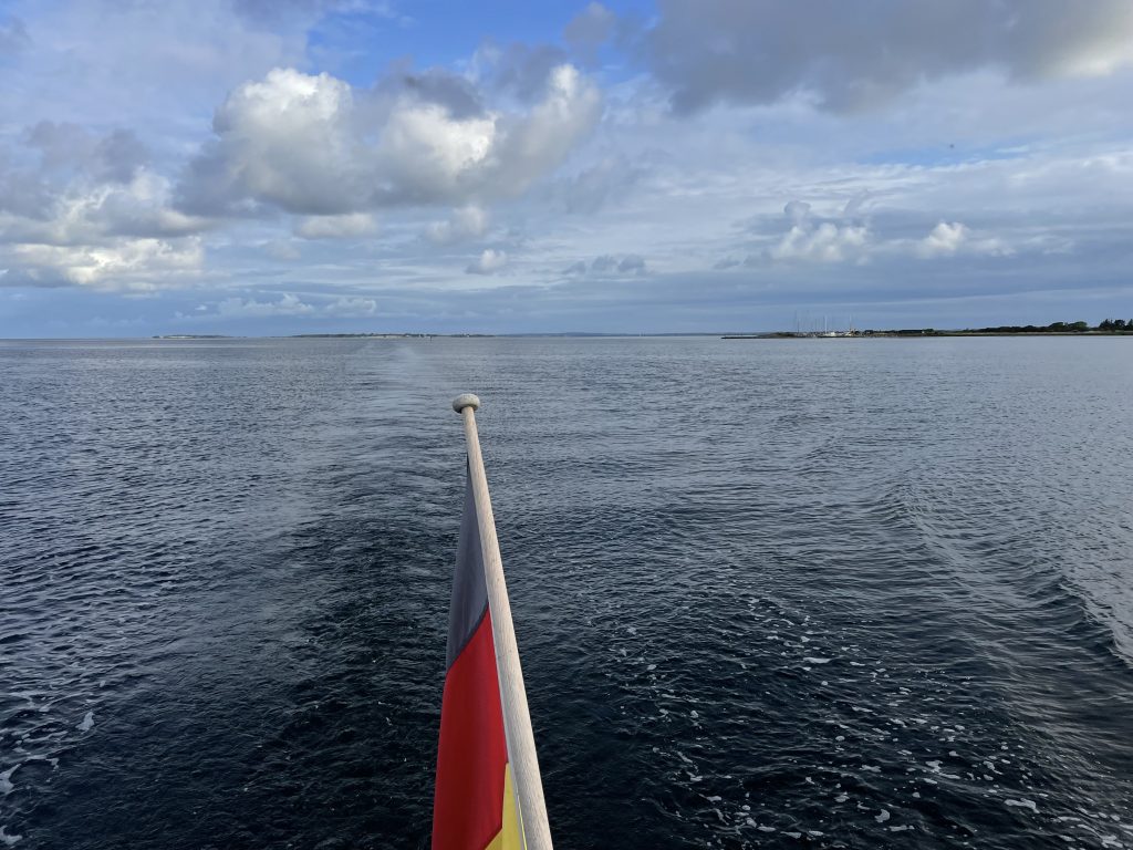 Die Entscheidung ist schnell getroffen: eine kurze Nacht mit Wecker um 03.30 Uhr, ablegen, wenns dämmert um ca. 04.30 Uhr, und dann gleich durch bis Heiligenhafen, damit wir nicht erst wieder bei Starkwind einige Tage in Marstal oder Bagenkop festhängen. Gesagt… getan. Wir warnen unsere Nebenlieger vor (falls sie einen leichten Schlaf haben) und legen unsere Leinen schon mal vorsorglich über die Leinen der Nachbarn. Dann müssen wir zum Ablegen nicht lange fummeln und brauchen unsere Leinen nur leise abheben.