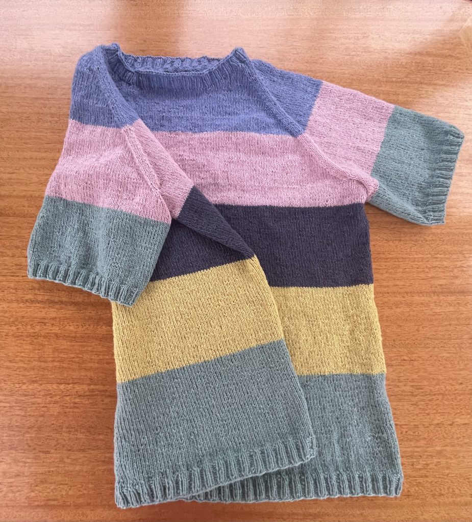 Und übrigens… wen es interessiert: ich hatte mir Mitte Juni in Marstal Wolle gekauft. Das durchwachsene Wetter hat auch was Gutes: der Pulli ist fertig!