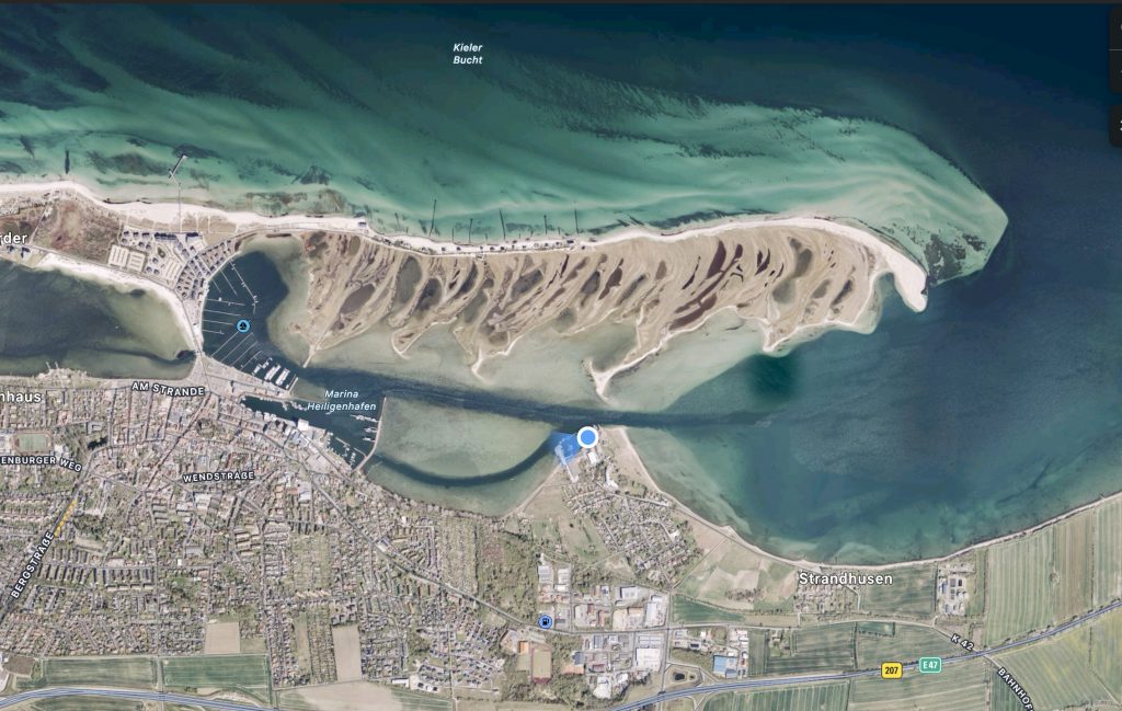 die Fahrrinne um die Halbinsel Graswarder zu erkennen