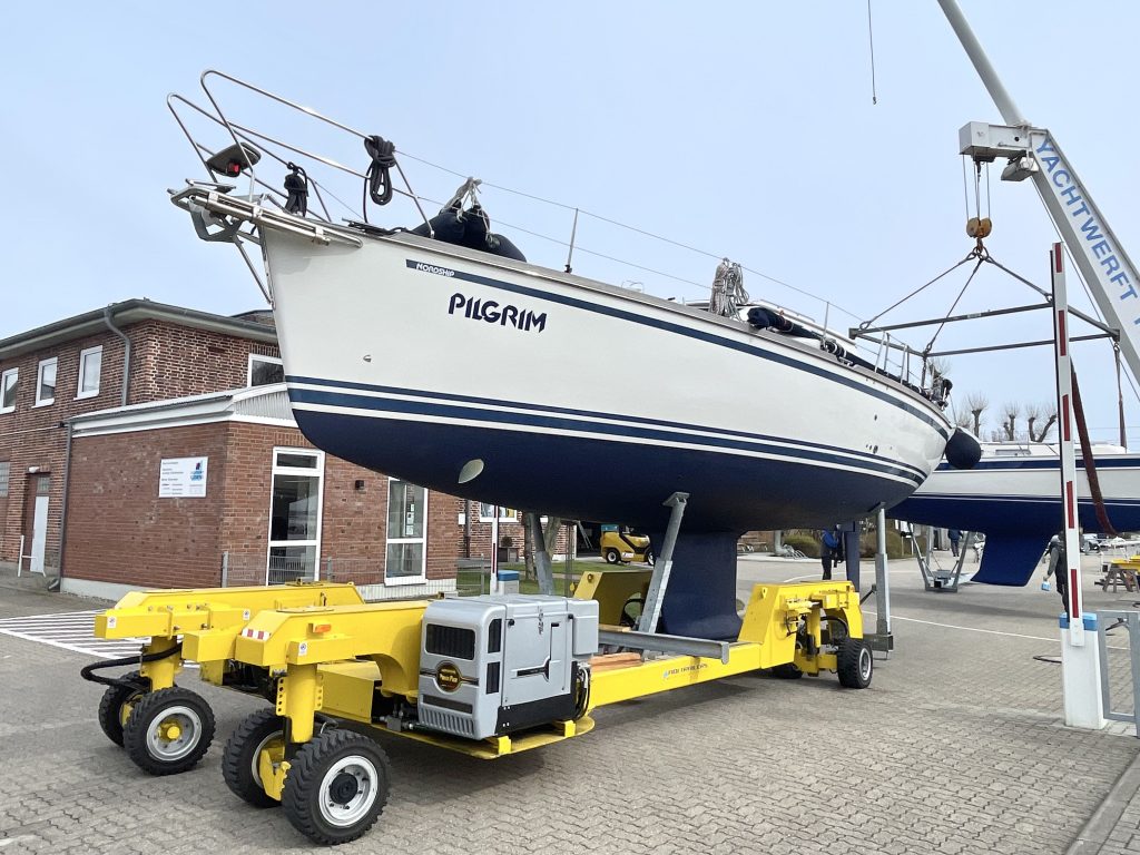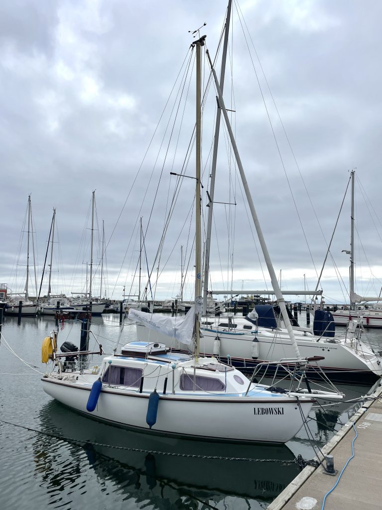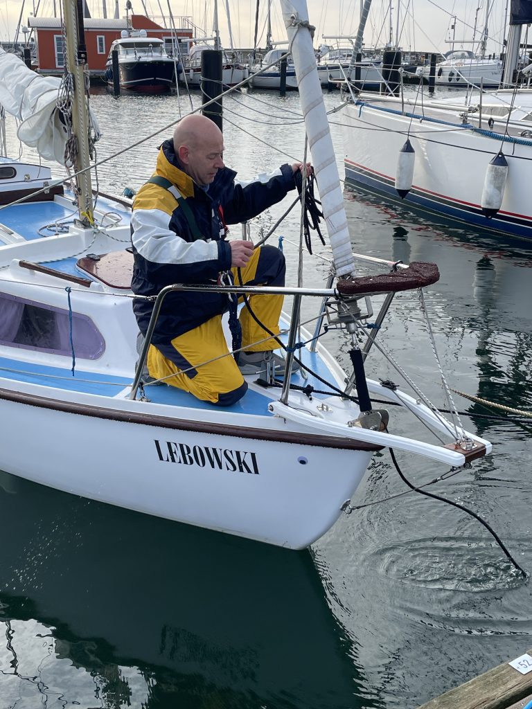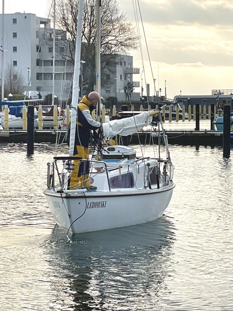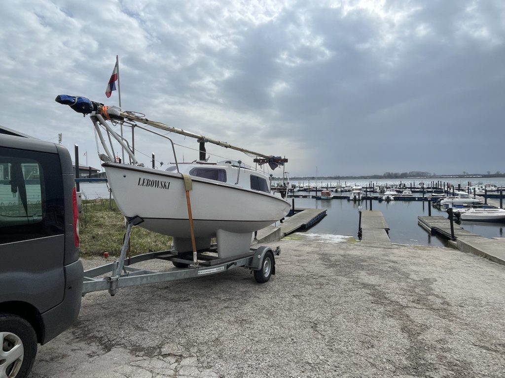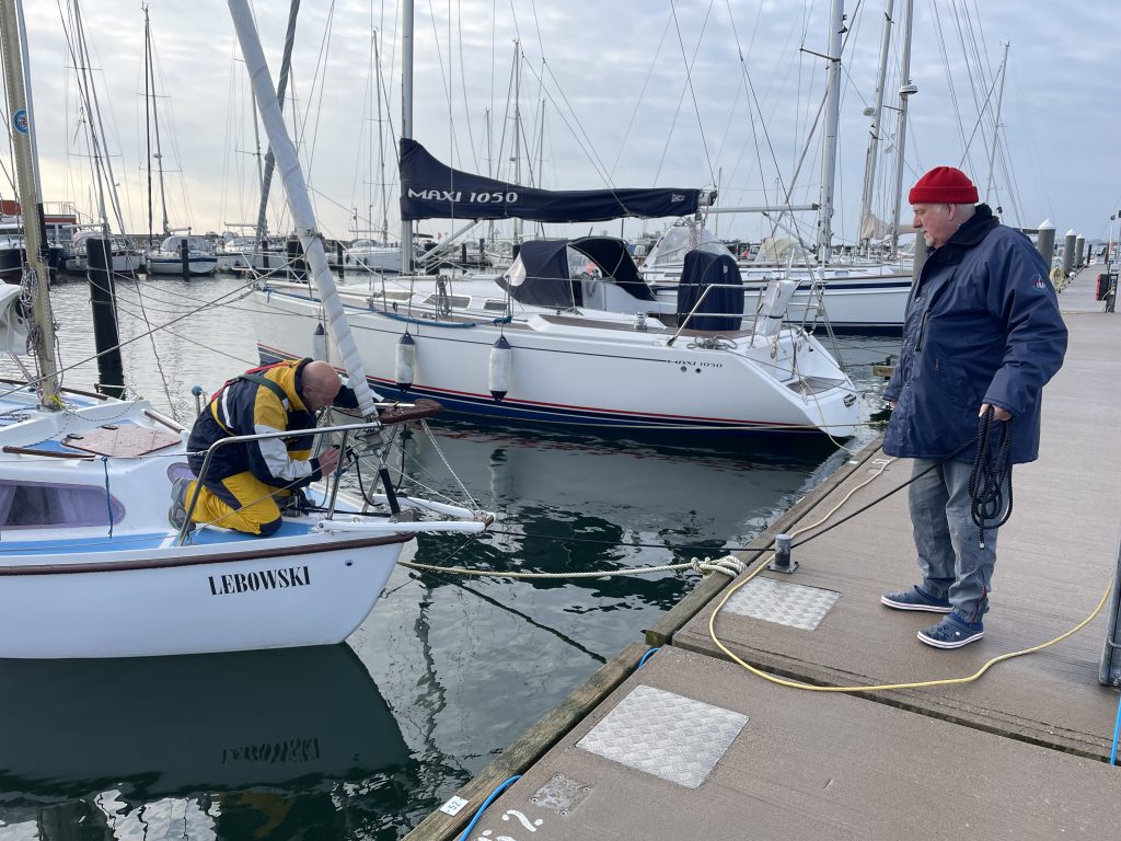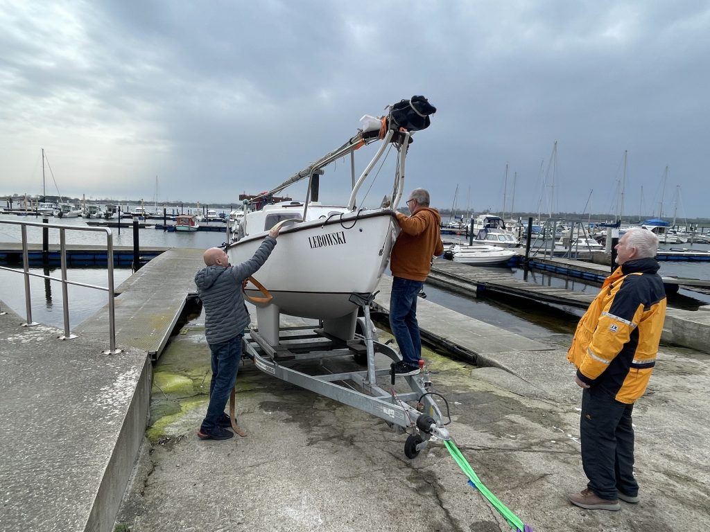 Doch vorher treffen wir in Großenbrode noch einen neuen Segelfreund, den wir im letzten Herbst auf einer tollen Veranstaltung am Rhein kennengelernt haben. Er ist mit seinem trailerbaren Kleinkreuzer „Lebowski“ (eine Seawych 19, Länge 5,80m !!!) nach Großenbrode gekommen, um von hier aus seinen 6-monatigen Törn durch die Ostsee zu starten. Wir können ihm zum Einwassern noch etwas behilflich sein – Thorsten hätte das aber sicherlich, gemeinsam mit seiner Partnerin, auch ohne uns geschafft.