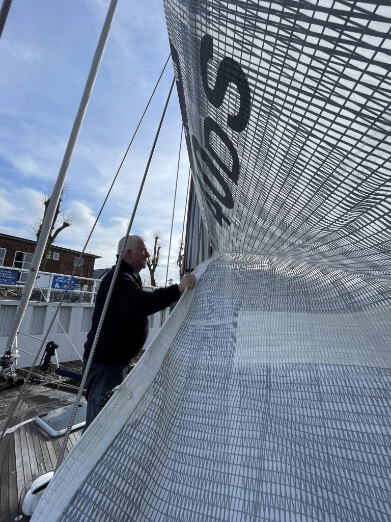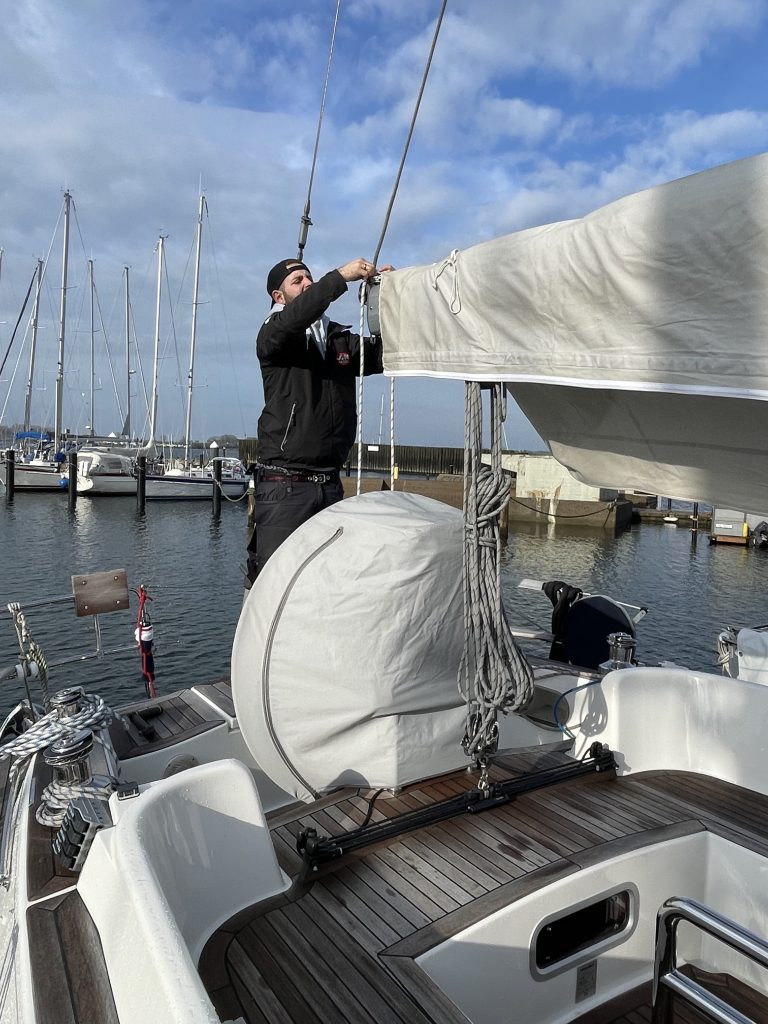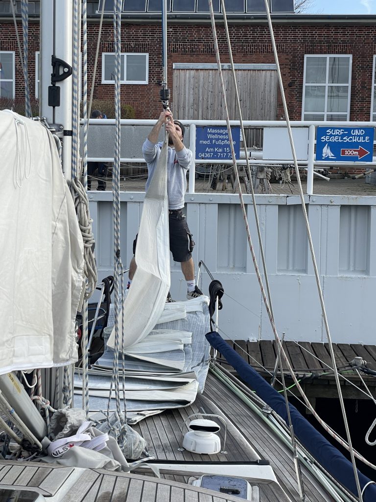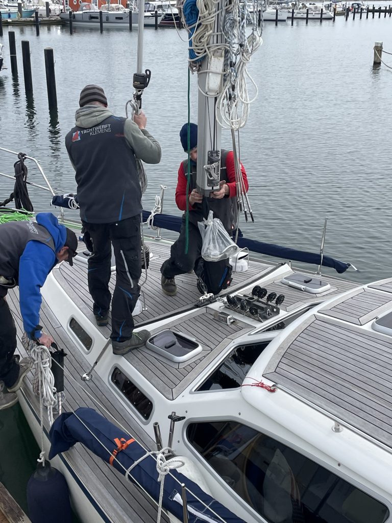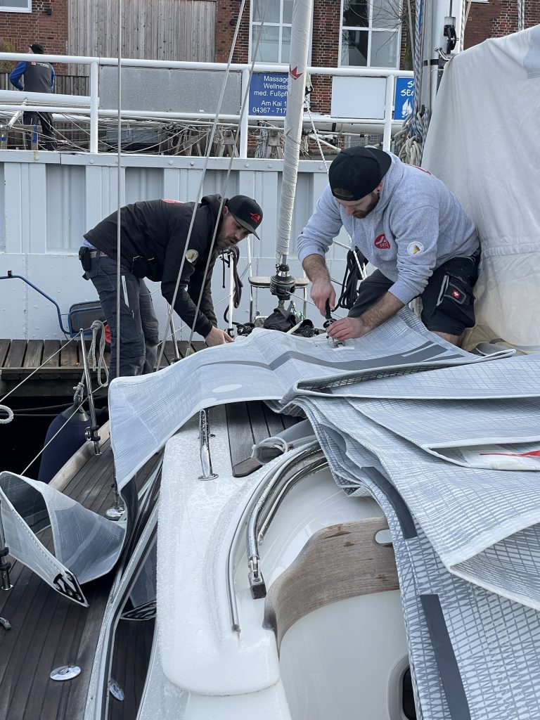 Doch vorerst haben wir an Bord noch einiges zu tun: alle Leinen wieder dorthin ziehen, wo sie hingehören… Segel anschlagen… Elektrik anschließen und prüfen… ein Update auf die im letzten Herbst neu eingebauten Kartenplotter einspielen und hoffen, dass die damals aufgetretenen Fehler verschwinden… etc.