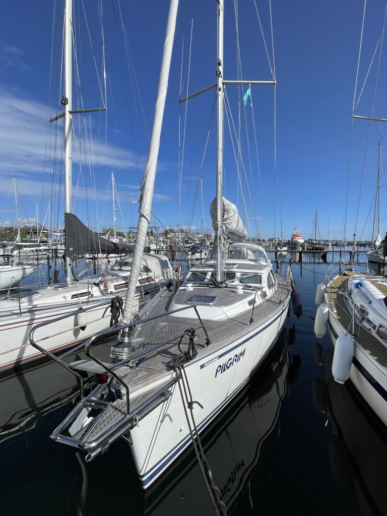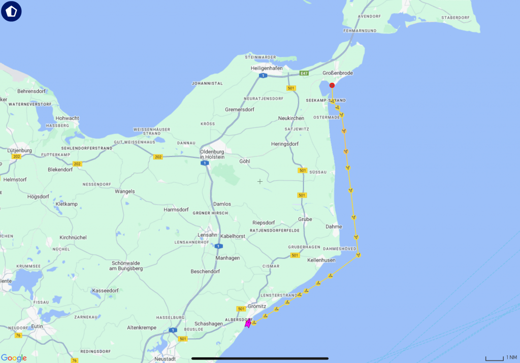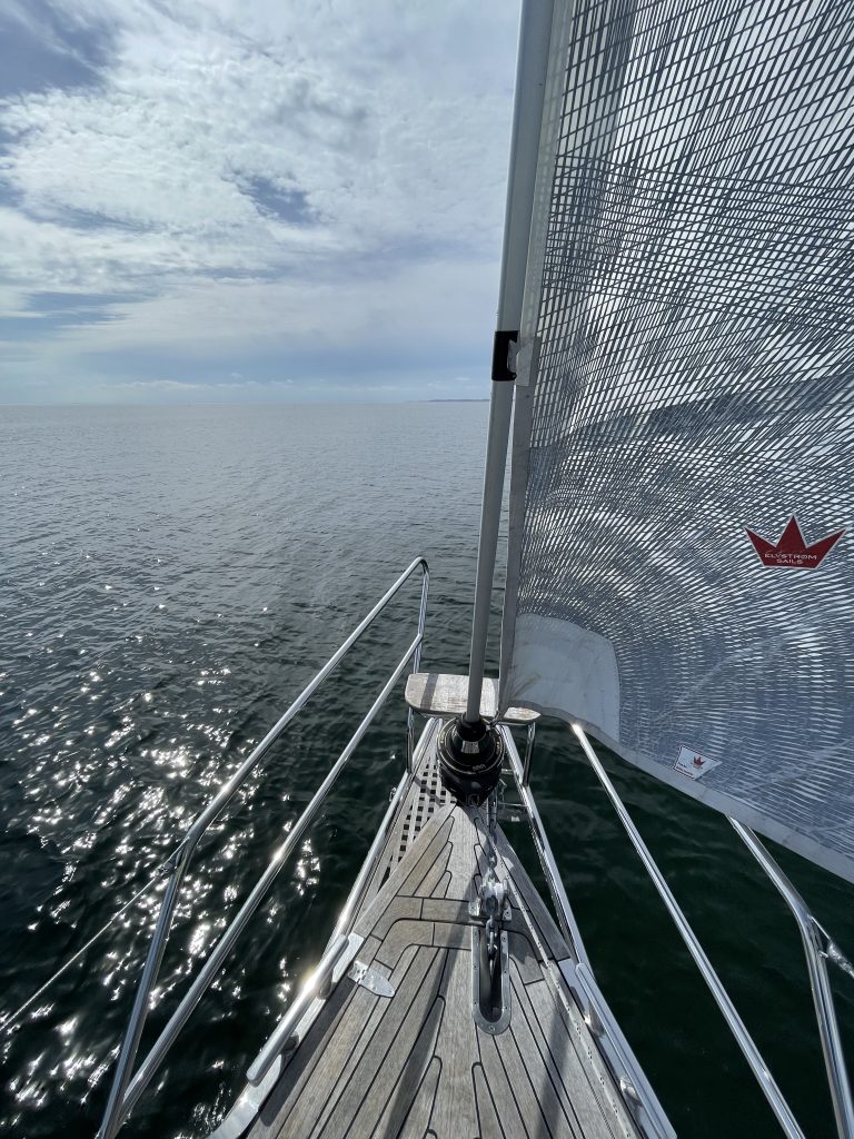 Nach erfolgten Arbeiten und einer glücklicherweise schnell durchziehenden Gewitterfront geht es bei schönem Frühlingswetter den kurzen Weg nach Grömitz auf unseren angestammten Liegeplatz. Unterwegs können wir Segel und Navigation testen und das entspannte Dahingleiten durch die ruhige Ostsee genießen. Bestes Wetter für den ersten Segeltag… und es ist kaum jemand sonst unterwegs.