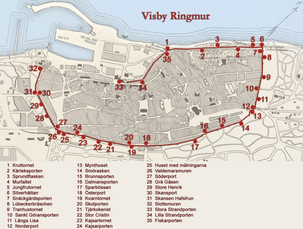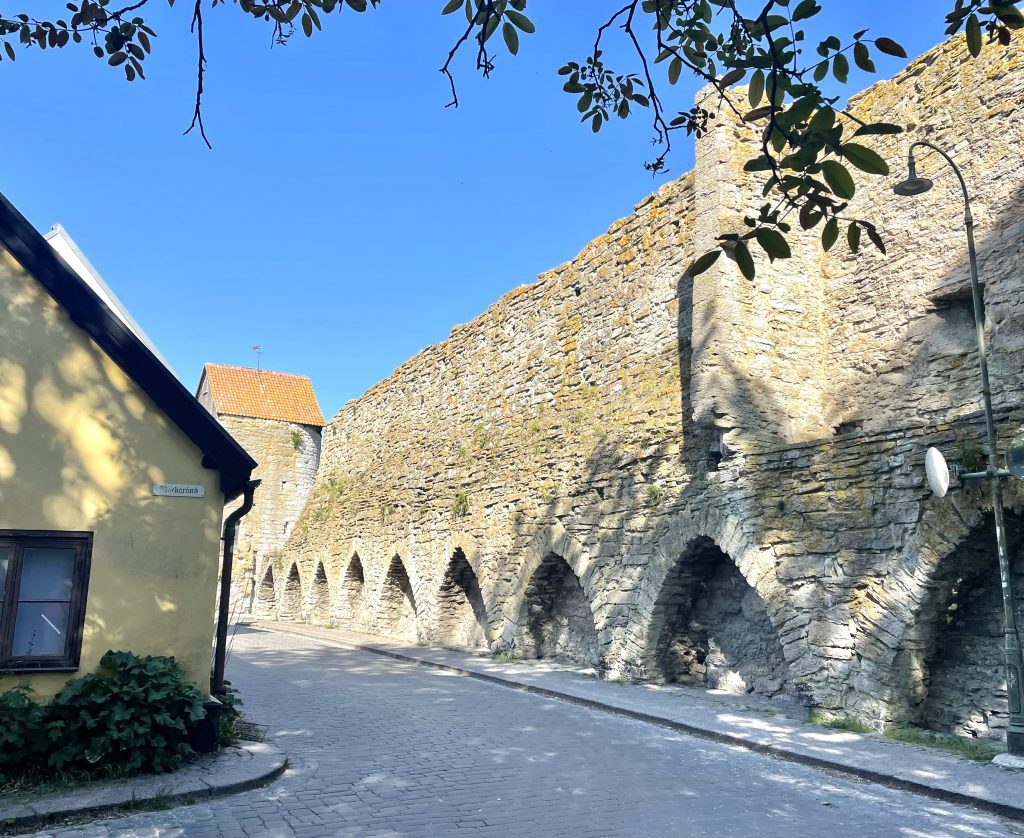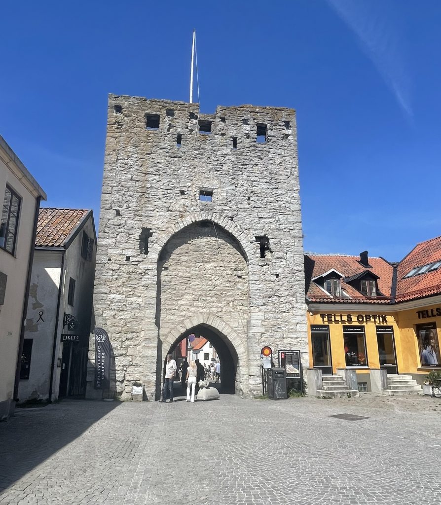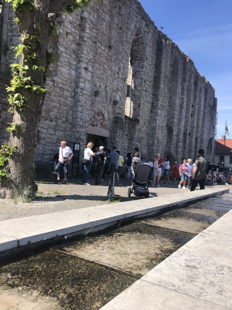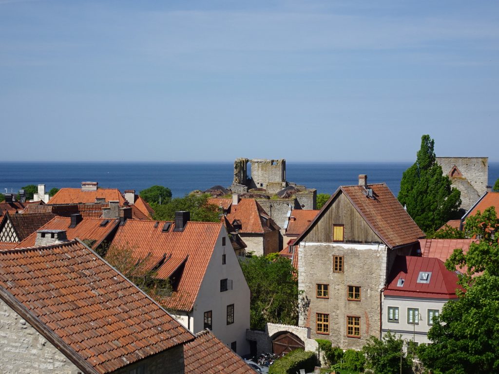 In Visby bleiben wir einige Zeit, denn es gibt sooo viel zu sehen. Wir erwandern die krummen kopfsteingepflasterten Gassen bergauf und bergab… es ist ordentlich hügelig hier. Nix für Fahrradfahrer. Bunte Häuschen und Kirchenruinen gehören zum Stadtbild und an allen Ecken erinnern mittelalterliche Bauten an die lange Geschichte des Ortes. Visby steht seit 1806 unter Denkmalschutz und seit 1995 auf der Liste des UNESCO-Weltkulturerbes. Sie ist die am besten erhaltene befestigte Handelsstadt Nordeuropas und war vom 12. – 14. Jahrhundert das führende Zentrum der Hanse im Ostseeraum. Besonders beeindruckend ist die zwischen 1250 und 1288 errichtete und fast vollständig erhaltene Stadtmauer („Rindmuren“). Sie umgrenzt mit ihren 6 bis 9m hohen Mauern und zahlreichen Türmen und Toren auf 3,5 km Länge die gesamte Altstadt.