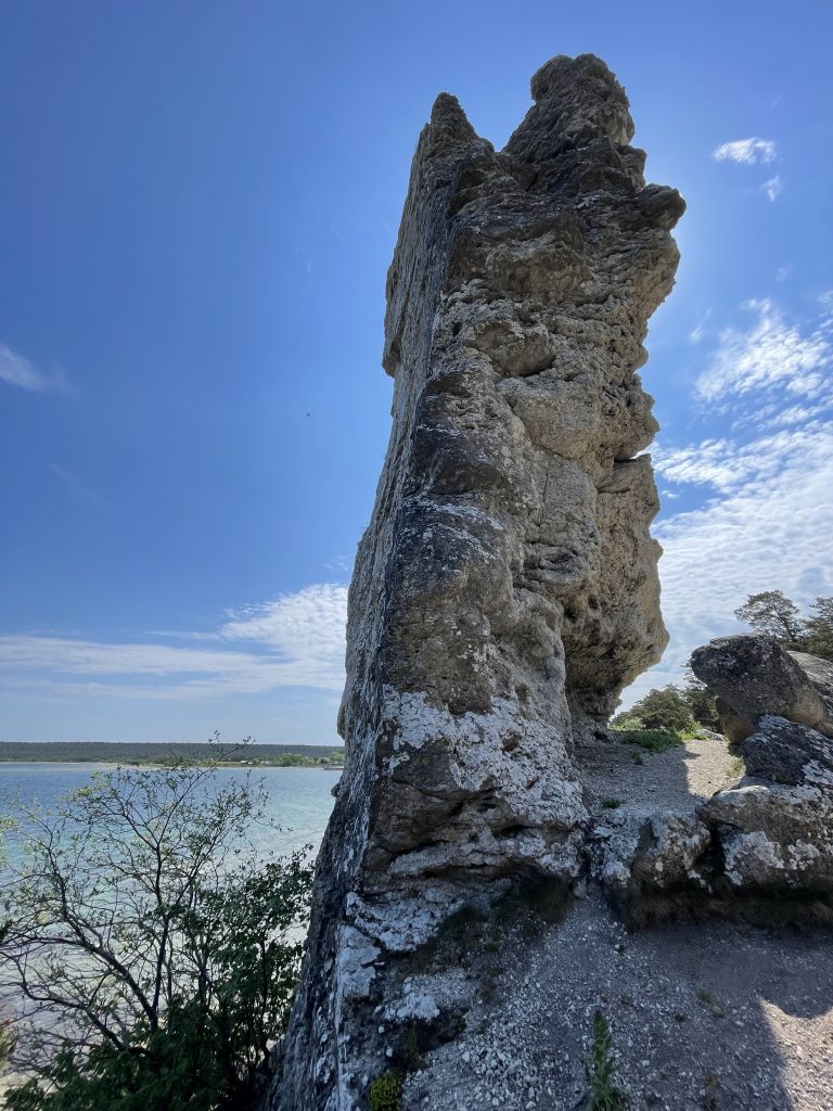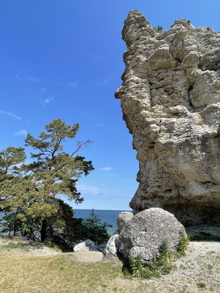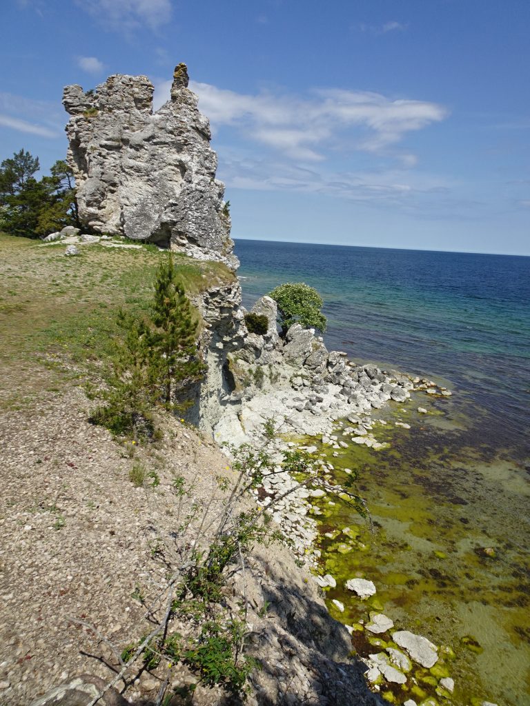 Und dann sind da natürlich die steilen Klippen und Raukar (oder Rauken), die hohen Kalksteinsäulen. Typisch für Gotland und beeindruckend anzuschauen.