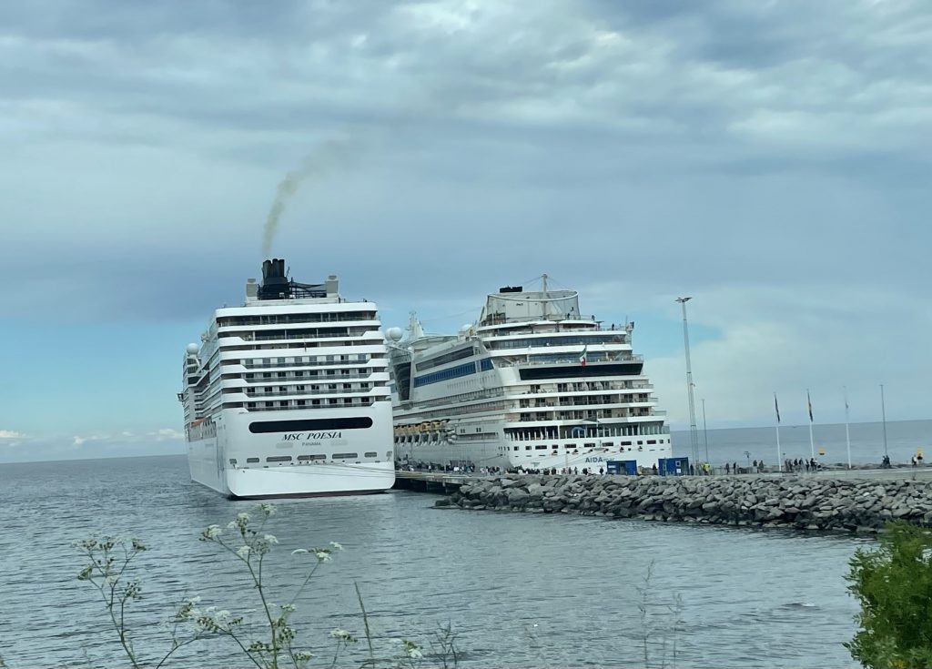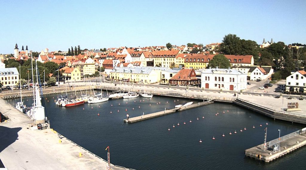 Visby, die Hauptstadt Gotlands von der Seeseite aus zu erkennen, ist nicht sonderlich schwierig, wenn man weiß, dass es hier große Fährterminals gibt. Von Weitem sieht man sowas wie eine lange weiße Wand: die am Terminal liegenden drei Fähren. Sie fahren von Gotland nach Oskarshamn und Nynäshamn. Beim Einlaufen in den großen Hafen von Visby hat Kalli ein Déjà-Vu: überall große Fähren… wie vor 2 Jahren beim Einlaufen in Mariehamn/ Ålands. Glücklicherweise bleiben hier heute alle Fähren an ihrer Pier liegen und machen keine Anstalten, genau jetzt abzulegen. Wir können folglich ganz entspannt dicht an ihnen vorbei in das Gäste-Hafenbecken fahren. Da auch hier (noch) nicht viele Boote liegen, machen wir mal wieder längsseits an einem Steg fest. Und dann aber nix wie umgezogen – es ist Sommer🌞 und 26°C warm! Es steht daher bei Kalli auch bald ein Friseurbesuch an: die in zwischen lang gewachsene Wolle muss ab. Wozu gibt es Langhaarschneider…