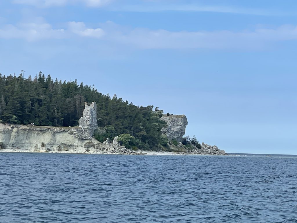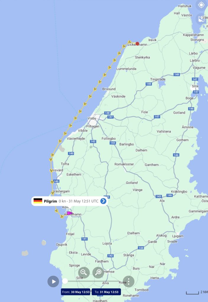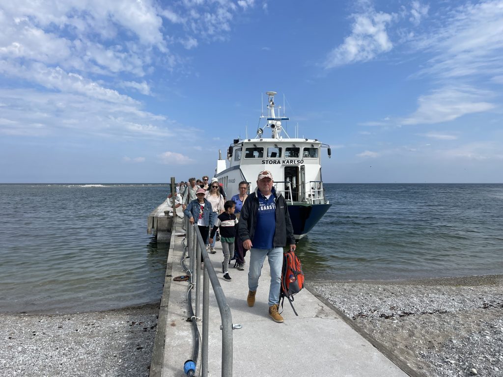 Ulli legt früh um 06.30 Uhr ab (ist eigentlich so garnicht seine Zeit🥱), und erreicht nach 12 langen Stunden sein Tagesziel bei Nynäshamn 👏🫡, wir unsere nächste Station Klintehamn schon nach 6 Stunden. Von hier aus fährt eine kleine Fähre regelmäßig zu einer als Naturreservat ausgewiesenen Insel – nach dem Yellowstone Nationalpark das zweitälteste Schutzgebiet der Erde! Wir haben die Insel in einem Krimi als sehr beeindruckend wahrgenommen: „Maria Wern – Kripo Gotland“ hatte hier mal einen Fall zu lösen. Und da wir schon mal in der Nähe sind, wollen wir da auch hin.
