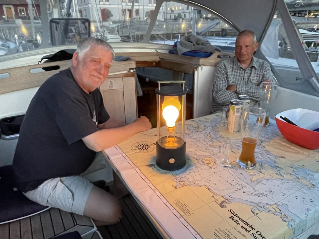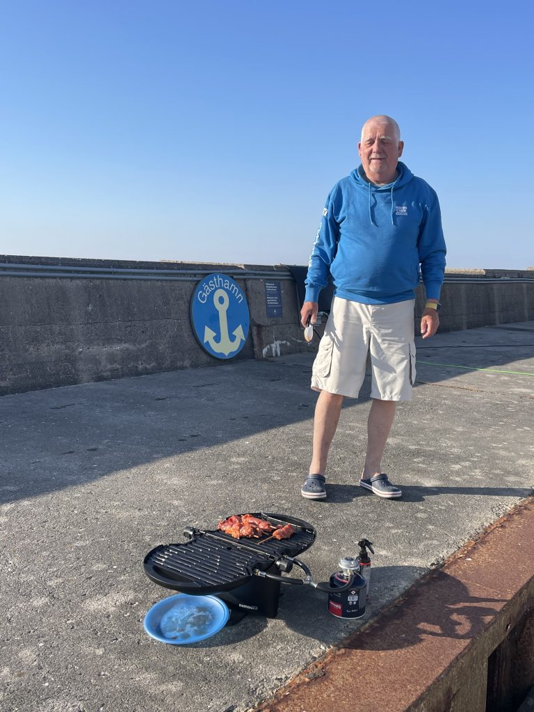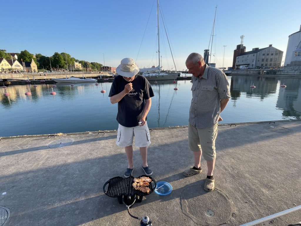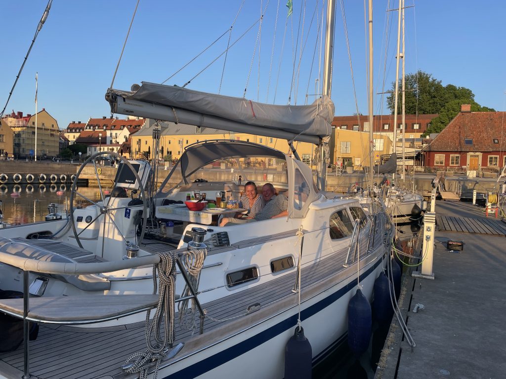 Und da sich Ullis und unsere Wege nun doch trennen, genießen wir noch einen schönen Abschlussabend – leider. Es ist schön, wenn man im Hafen auf liebe Freunde trifft! Doch Ullis Reise führt ihn weiter gen Norden in Richtung Höga Kusten. Ich kann Kalli leider nicht zu einer Weiterfahrt bis zur im Norden Gotlands vorgelagerten Insel Fårö oder gar einer Umrundung Gotlands überzeugen, aber doch wenigstens von einem Besuch eines TV-Schauplatzes im Südwesten Gotlands. Und anschließend kann es dann wieder an die schwedische Ostküste gehen. Also, auch wenn’s schwerfällt, wir müssen tschüß sagen🥹💁♀️💁♂️