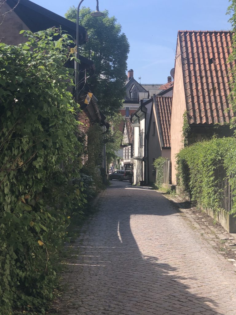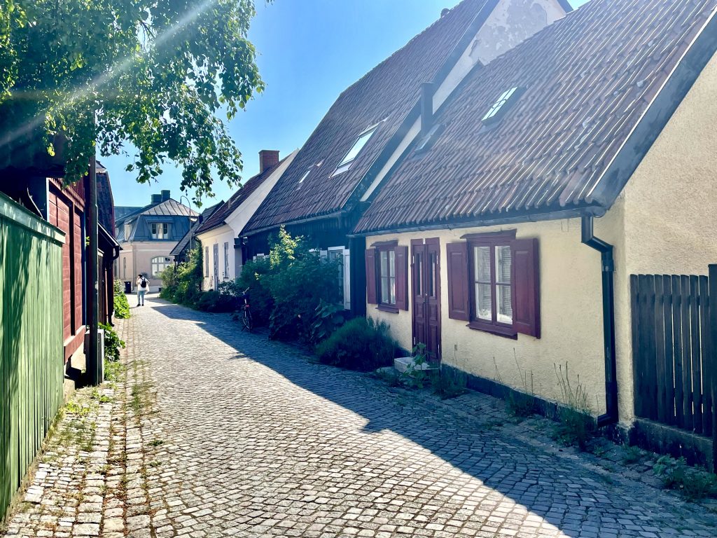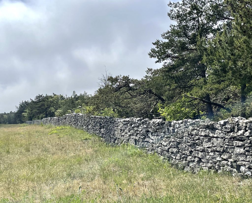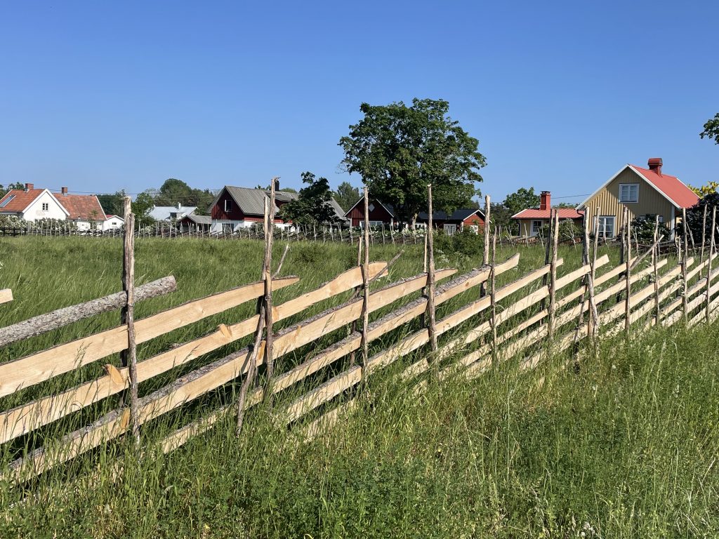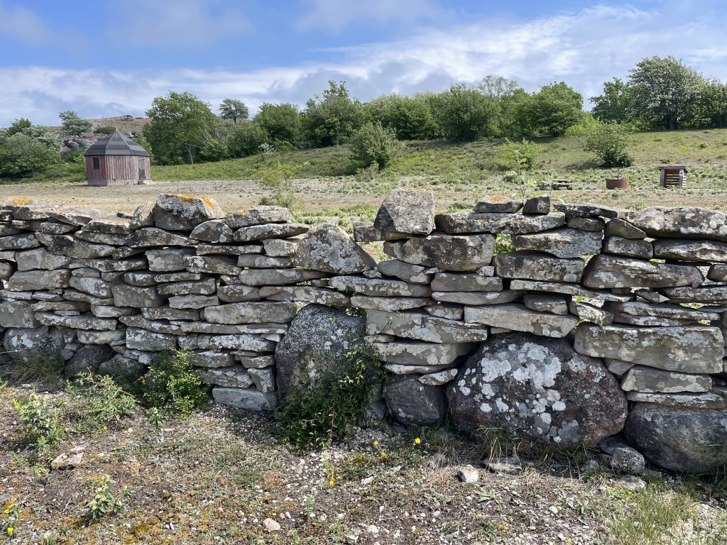 Die Landschaft ist irgendwie garnicht typisch schwedisch. Besonders auffällig finden wir die in voller Blüte stehenden riesigen Fliederhecken. Gefühlt jedes Grundstück ist damit zur Straße hin begrenzt. Wenn mal kein Flieder angepflanzt ist, bilden niedrige Trockenmauern – also kleine Mauern aus losen Natursteinen, das ohne Mörtel errichtet werden – die Abgrenzung. Alles sieht gepflegt aus, mit ordentlich Platz zwischen den einzelnen Gehöften. Die Trockenmauer wurde übrigens 2018 von der UNESCO in die Repräsentative Liste des immateriellen Kulturerbes der Menschheit aufgenommen!