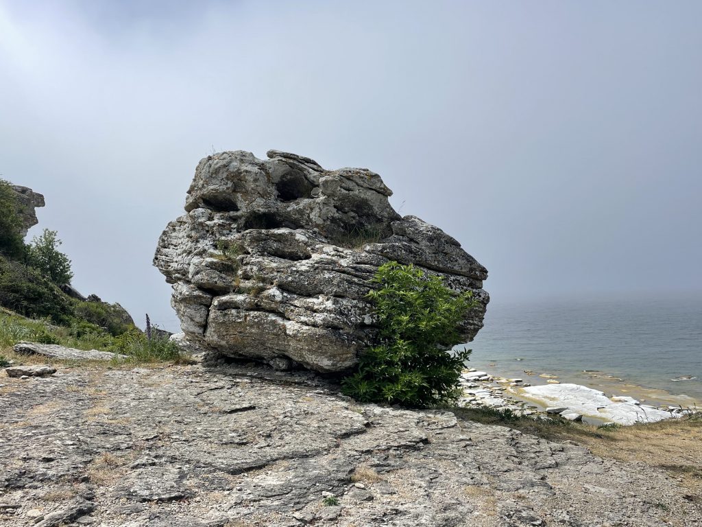 Irgendwann verabschieden wir uns aber doch von Visby. Wir segeln die Westküste weiter hoch und wollen noch einen anderen Hafen auf Gotland besuchen. Unser nächstes Ziel ist Lickershamn. Es gibt hier nicht wirklich viel, dafür aber wichtiges: Ruhe, Beschaulichkeit, Fliederhecken, viele hier typische urige Holzzäune… und Gotlands größten Rauck! Hier steht die „Jungfrun“ (27m über dem Meer,7m Höhe bis zum Boden) und präsentiert sich bei bestem Sonnenschein.