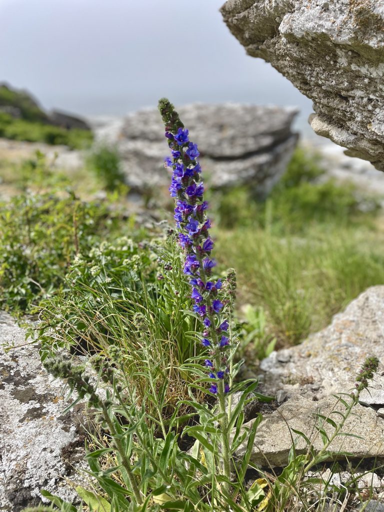 Einen Tag mieten wir uns dann ein Auto, um den südlichen Teil der Insel zu erkunden. Das Wetter ist ideal für eine Rundfahrt: etwas trübe und es zeigen sich kleine Wolken am Himmel. Auf dem Weg gen Süden schauen wir uns auch einige kleine Häfen an: wollen wir dahin?… passen wir da rein?… Erst an den touristisch interessanten Steilküsten begegnen uns diverse Reisebusse: während wir uns (wieder in fröhlicher Gemeinschaft mit Ulli) etwas anschauen, halten mindestens zwei Busse: aussteigen… knips knips… einsteigen… weiter. Noch ein Bus… aussteigen… knips knips… einsteigen… weiter. Hmm😵💫, dann doch lieber einen guten Bildband betrachten.