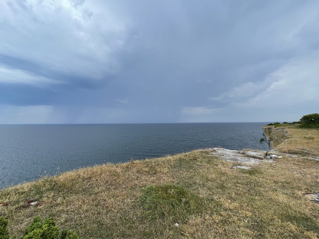 Als die Fähr-Rückfahrt näher rückt, erwischen uns doch noch einige Regentropfen. Die Fähre rauscht wieder mit 18kn zurück nach Klintehamn, diesmal allerdings etwas weniger geschmeidig als auf der Hinfahrt: die durchziehende Gewitterfront hat ihre Spuren auf dem Wasser hinterlassen.