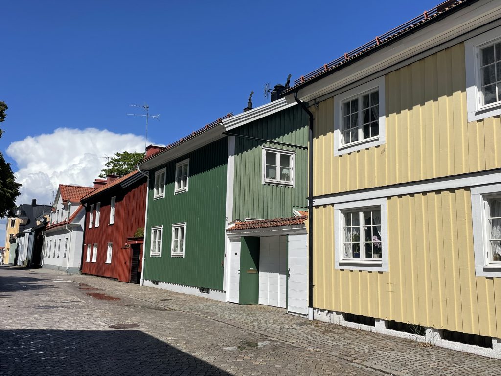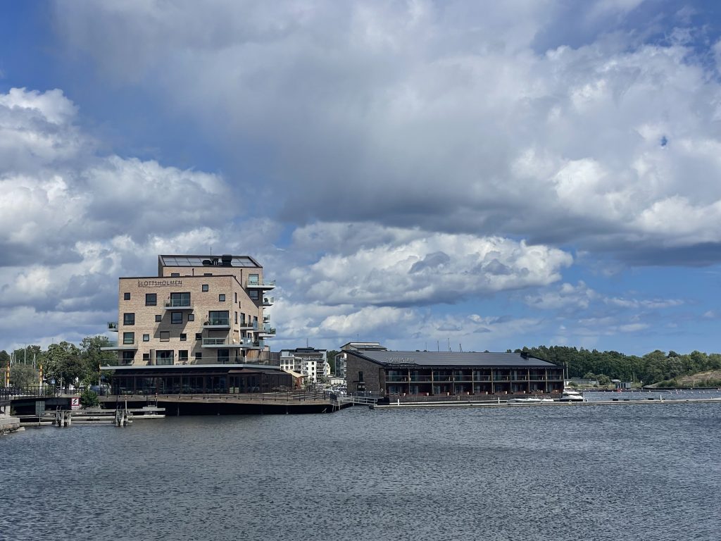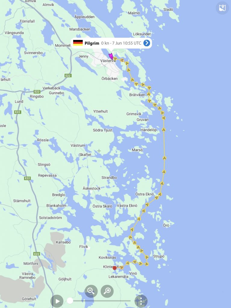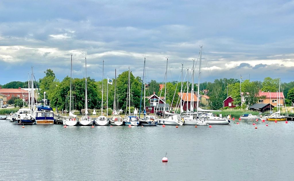 Am nächsten Tag ist der Regenspuk erstmal wieder vorbei. Doch die Wind- und Wettervorhersagen berichten nichts Gutes: die nächsten Tage kommt definitiv deutlich mehr Wind und deutlich mehr Regen. Also ab nach Västervik, einer etwas größeren Stadt hier in der Region. Vor zwei Jahren waren wir kurz dort und hatten uns damals vorgenommen, diese Stadt irgendwann mal etwas länger zu erkunden. Klappt dann wohl in diesem Jahr. Wir genießen die morgendliche Ruhe und gleiten – allerdings unter Motor – durch das spiegelglatte Wasser… bis Wind und Wolken wieder auftauchen (wie angekündigt). Als wir aus dem geschützten Inselgewirr um Klintemåla herauskommen können wir Segel setzten.