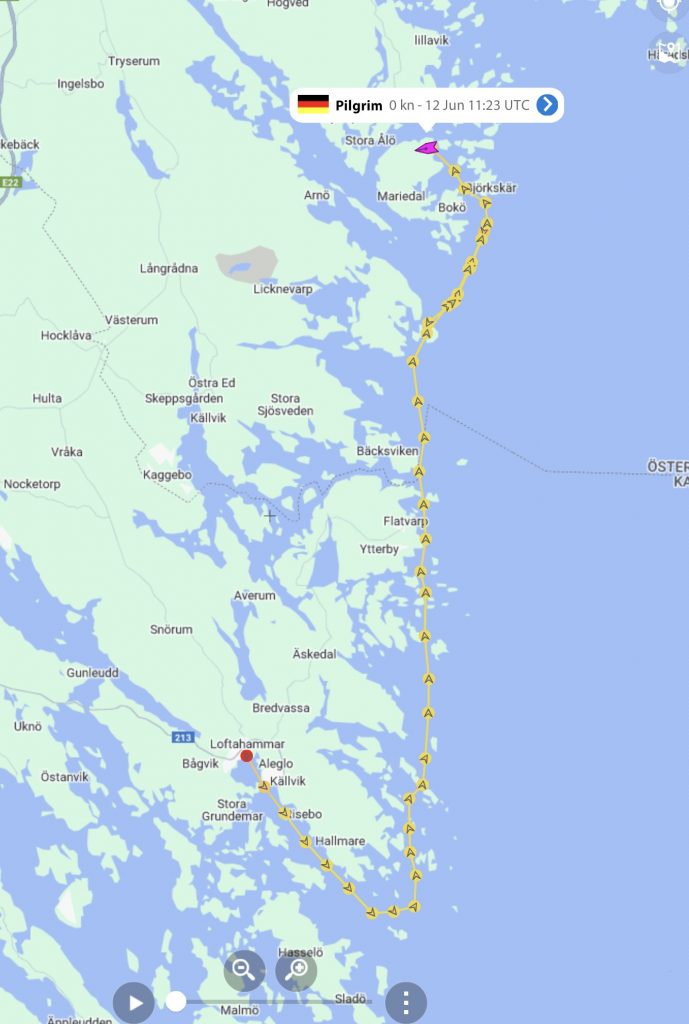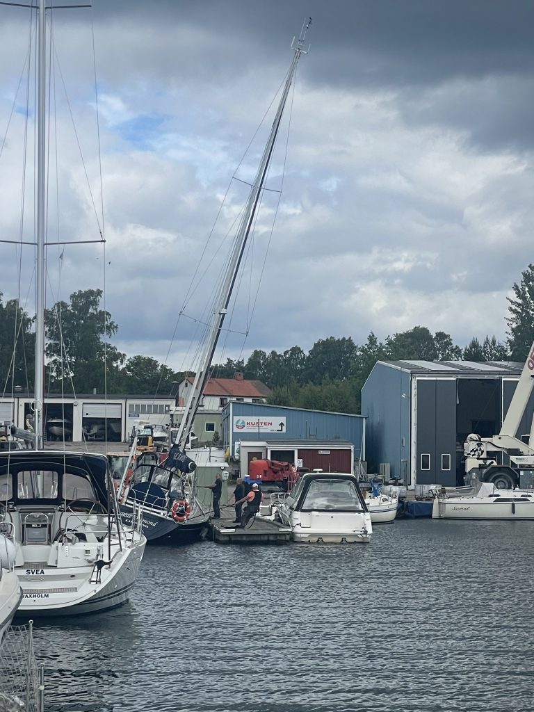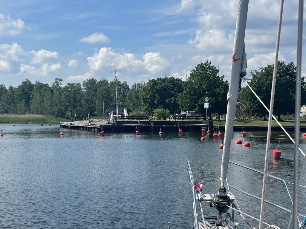 Irgendwann sind Wind und Regenwolken durch und wir segeln weiter. Am Dienstag, den 11. Juni fahren wir eine gemütliche Etappe nach Loftahammar. Hinweis: das Getriebe fällt nach 20min aus… die ausgetauschte Sicherung scheint folglich noch nicht alles gewesen zu sein. Ulli MacGyver vermutet per Ferndiagnose sofort eine weitere Sicherung in einem der Schaltkästen bzw. ein weiterführendes Kabel, dass ggf. auch etwas korrodiert ist. Schaut Kalli dann nach, wenn wir im nächsten Hafen fest sind. Loftahammar ist ein kleines Nest in einer rundum geschützten Bucht gelegen. Dort macht alles noch einen reichlich verschlafenen Eindruck, doch wenigstens der Schiffsausstatter hat einige Stunden geöffnet – wir brauchen zwar nichts, aber irgendwie finden wir doch etwas 🤷♀️ (neu Segelhose geht immer… wenn schon keine Schuhe). Beinahe hätte ich noch den Ausstellungshund mitgenommen (inkl. Hundeschwimmweste)… schließlich hat man an Bord einen Hund zu haben. Und, wir glauben es kaum, der örtliche Nahversorger hat täglich von 05-23 Uhr geöffnet – unglaublich! Die hier ansässige Werft bringt noch ganz entspannt einige wenige Schiffe ins Wasser… keine Spur von der in anderen Häfen zu spürende Geschäftigkeit. Schließlich muss in einer Woche, zu Mitsommer, alles fertig sein. Dann geht hier die Saison richtig los. Wobei – einen wirklich professionellen Eindruck macht das hier nicht… oder muss ein Schiff so schief in der Slipanlage hängen? Hmm 🤨… seltsam. Wir genießen die abendliche Ruhe, zu der sich die Sonne nochmal richtig ins Zeug legt. Oh, wie friedlich.