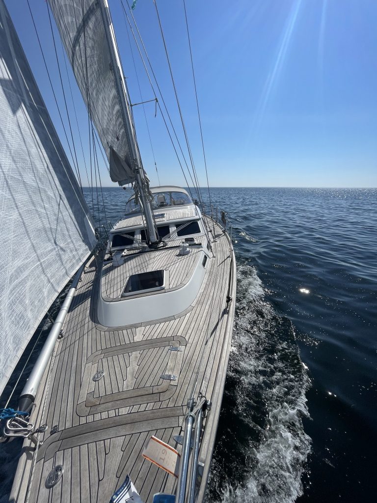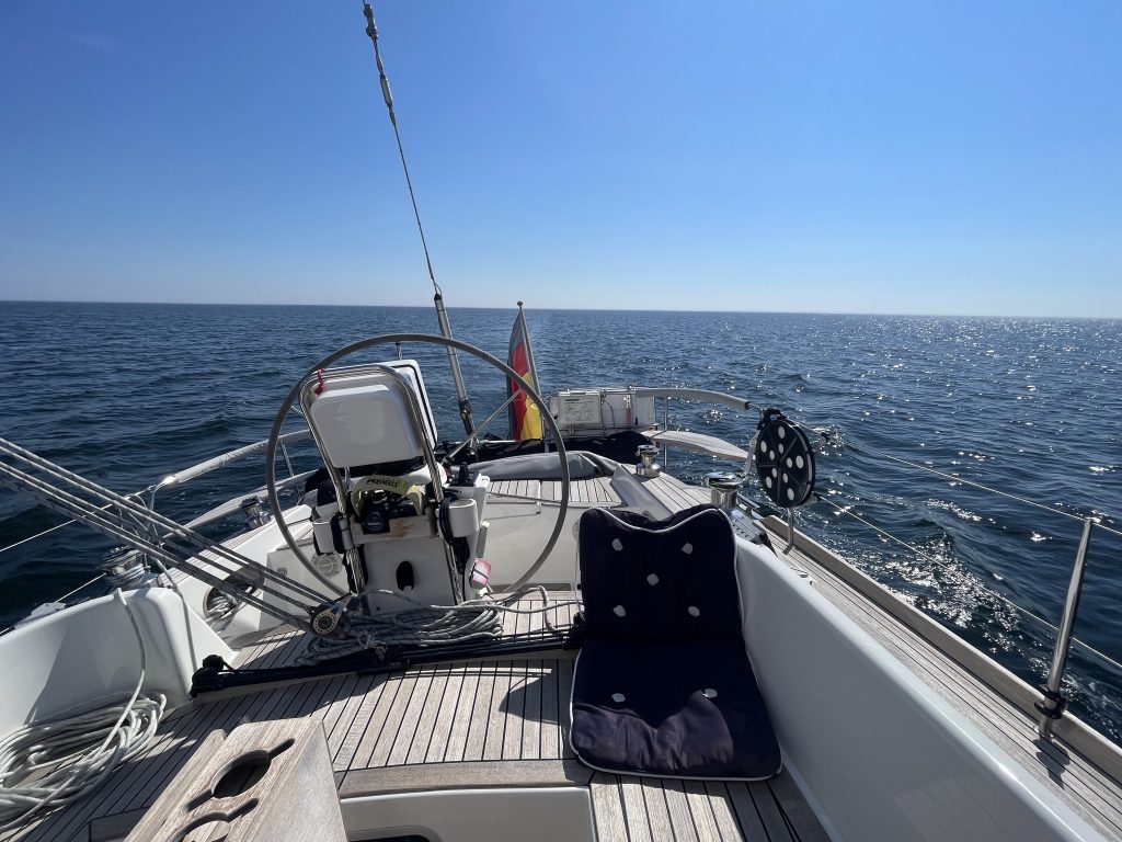 Der Motor läuft dabei allerdings mit, um noch einige Daten für unsere „Getriebe-Ausfall-Testreihe“ zu sammeln – leider mit Erfolg. Mehrfach erfolgt die uns schon bekannte Notabschaltung. Wir kommen aber gut an unserem Zielhafen an, bevor der Wind am Nachmittag doch unangenehm zulegt.