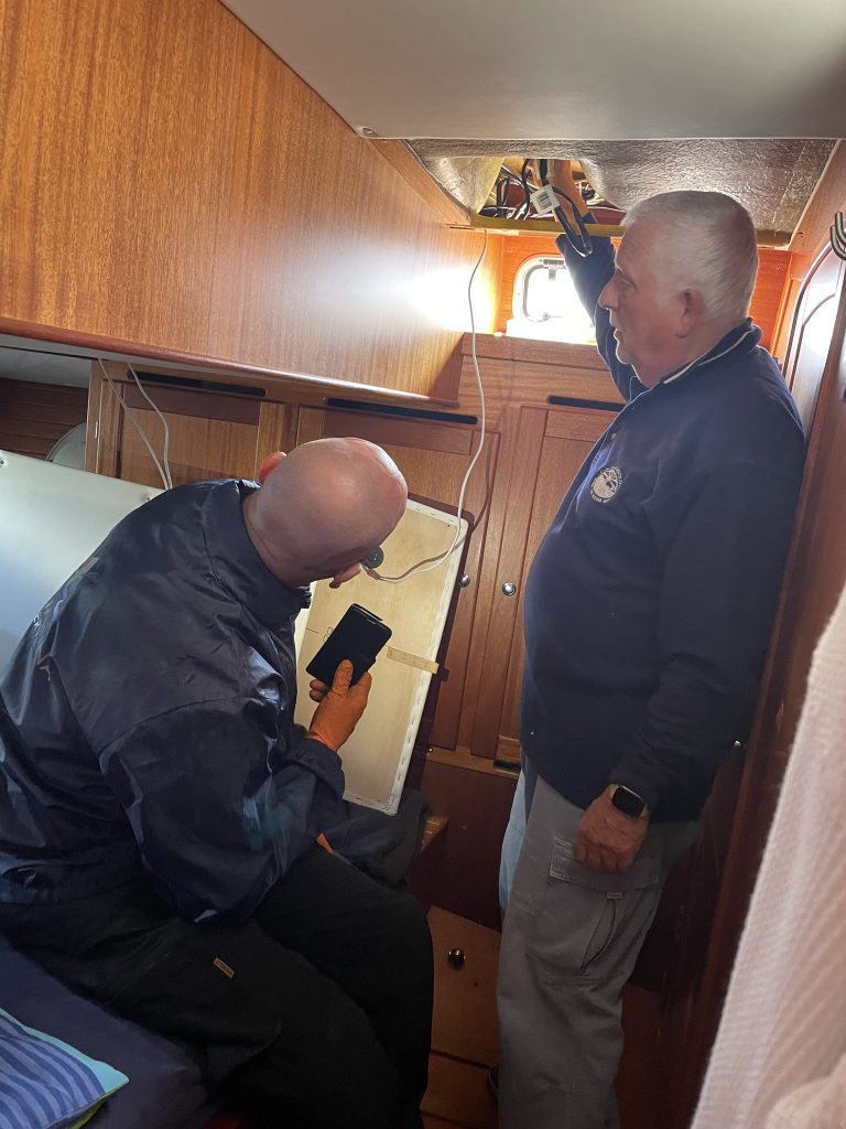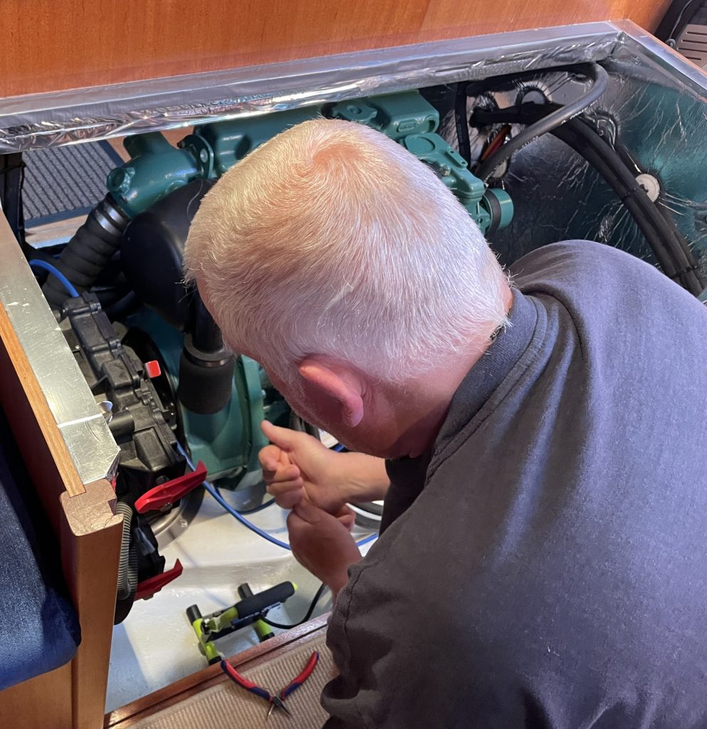 Doch mit Elektrik fühlt sich Kalli dann doch etwas überfordert. Er schaut mal bei der örtlichen Werft vorbei, ohne wirklichen Glauben an ein Hilfsangebot. Hier in Schweden sind alle Werftbetriebe bis über beide Ohren mit Arbeit voll: bis Mitsommer (21.06.) müssen alle Schiffe im Wasser sein. Keine Zeit für irgendetwas zwischendurch – das kennen wir schon. Doch man glaubt es kaum: „Wann wollt ihr denn weiter? Würde morgen früh um 07Uhr passen?“ Aber unbedingt! Große Freude! Und dann klingelt das Telefon sogar schon am frühen nachmittag und kurze Zeit später steht Mateusz an Bord… und tauscht nach einiger Suche eine korrodierte Sicherung aus. Sie funktioniert, aber eben nicht immer. Jetzt müssen wir nur hoffen, dass dies auch der (einzige) Fehler war. Und was sollen wir sagen: Ulli, der Bastelprofi „MacGyver“, war vermutlich mal wieder auf der richtigen Spur!!!