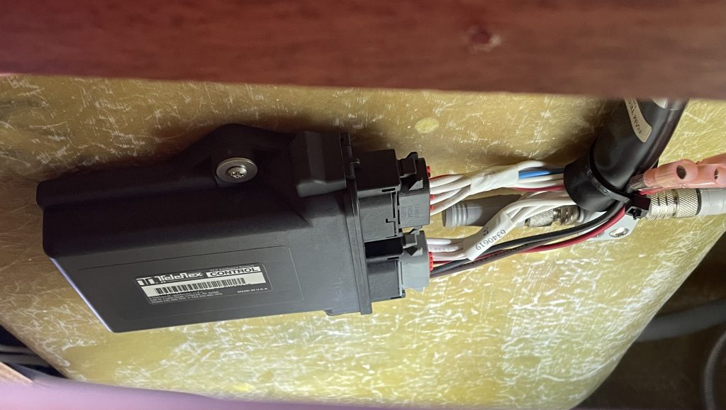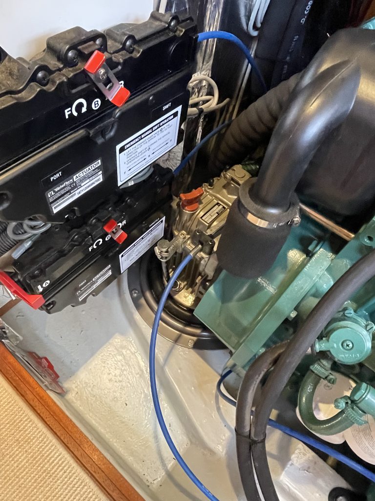 Hier bleiben wir jetzt einige Tage, denn ein gewaltiges Schlechtwetter-Gebiet zieht über ganz Schweden hinweg. Das gibt uns Zeit für intensive Putz- und Aufräumaktionen und ein etwa 4-stündiges Telefongespräch mit dem Bastelprofi Ulli. Der ist inzwischen so weit im Norden, dass es einer gut 6-stündigen Zugfahrt bedürfte, um bis zu uns zu kommen. Es juckt ihn schon mächtig in den Fingern, unser Getriebe-Problem zu lösen. Aber die Entfernung ist nun wirklich zu weit. Doch er motiviert Kalli, mal alle Verbindungsstellen, Anschlussklemmen und was sonst noch zwischen Schaltung am Steuerstand und Motor unter Deck zu finden ist genau zu kontrollieren und ggf. auseinander zu schrauben und wieder neu anzuschließen… oder wenigstens mal dran zu wackeln und zu gucken, ob sich was tut. Kalli ist tapfer, schraubt diverse Deckenverkleidungen ab, verfolgt jedes Kabel und kontrolliert alles. Und Ulli ist via Facetime immer dabei. Alles ist gut versteckt, doch nach einiger Suche finden die Beiden die einzelnen Komponenten, die zu dem Getriebe-Schaltmechanismus gehören. Wir haben also mal wieder Baustelle an Bord, aber leider… leider… alles fest, keine Korrosion gefunden, kein lockeres Kabel zu entdecken. Der Fehler bleibt. Mist