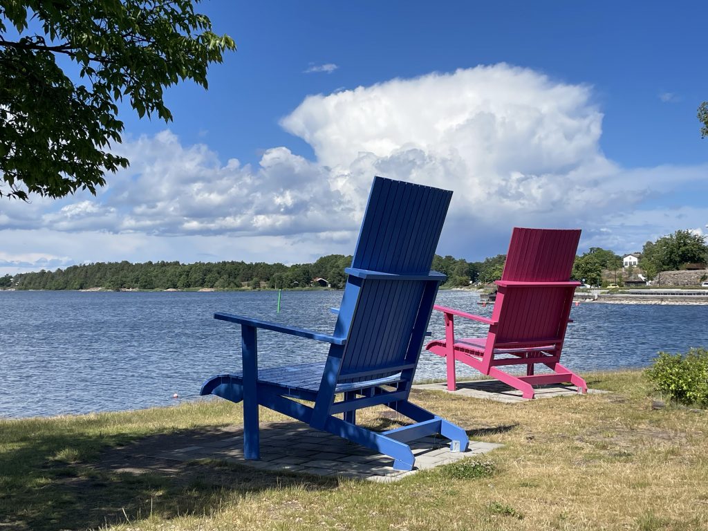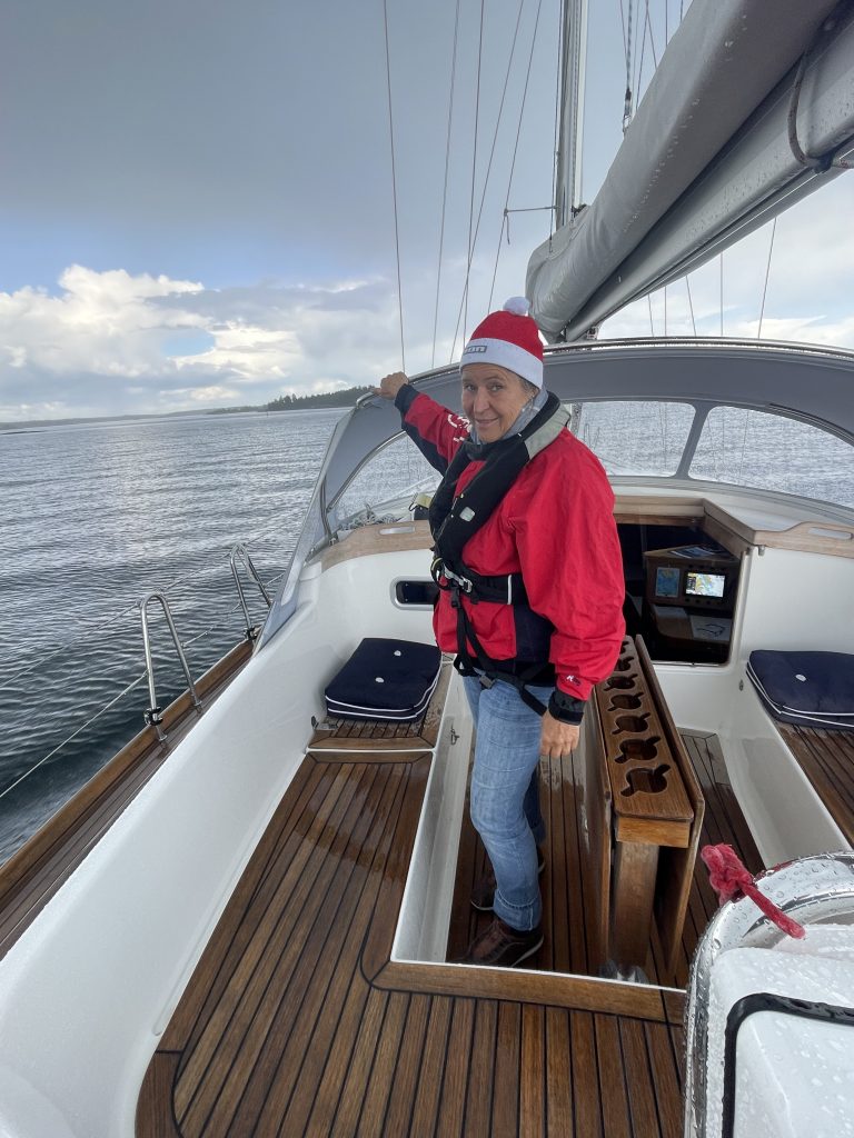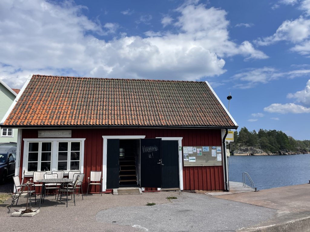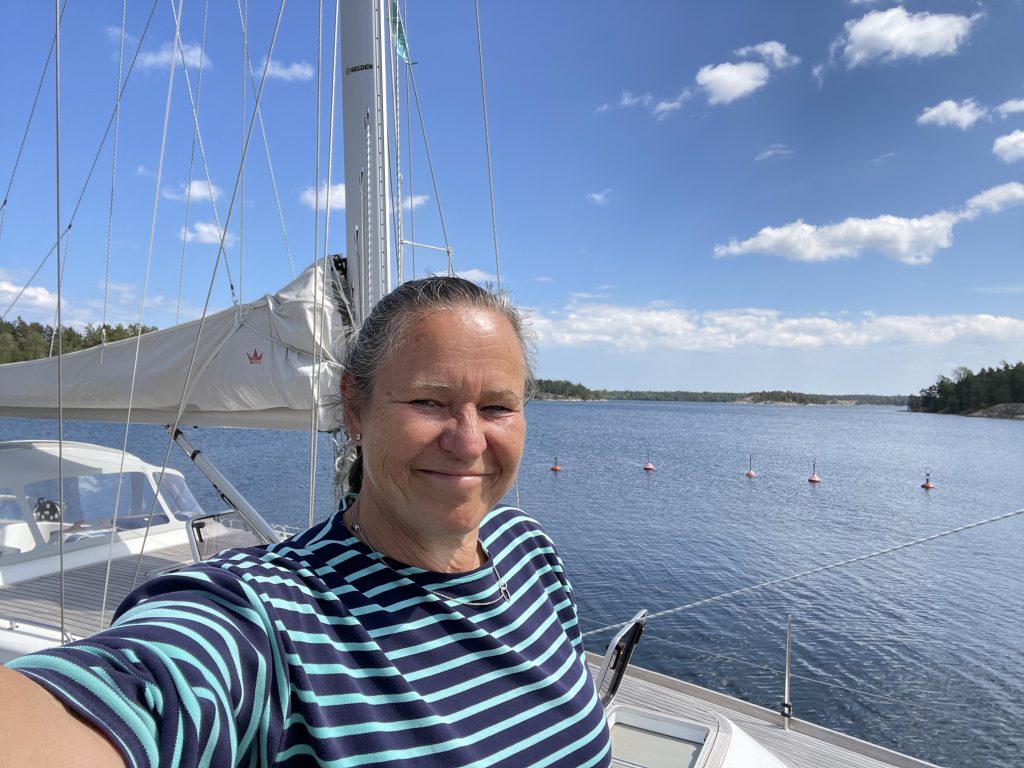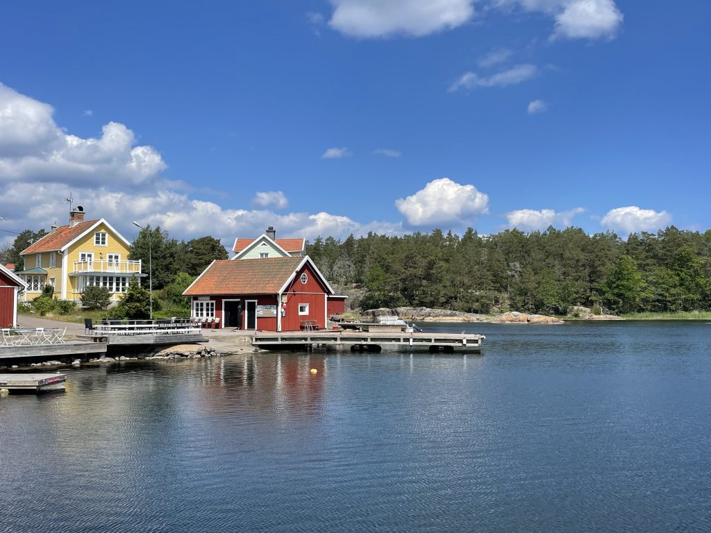 Und dann kommt plötzlich eine Böe nach der anderen… dunkle Wolken und auch einzelne Schauer ziehen über uns hinweg. Offensichtlich hat es das durchwachsenen regnerische Deutschland-Wetter jetzt auch an die Ostschwedische Küste geschafft. Wäre nicht notwendig gewesen. Das geplante abendliche Grillen muss ausfallen. Wir schaffen grad noch einen leckeren Rotwein auf der Pier vor dem nächsten Schauer. Man beachte: Rotwein. Den trinken wir lieber bei kälteren Aussentemperaturen. Und so ist es auch: der kräftige Wind hat ordentlich kalte Luft mitgebracht… abends muss die Heizung im Schiff für angenehme Temperaturen sorgen. Und die kurze Hose wandert erstmal wieder in den Schrank.