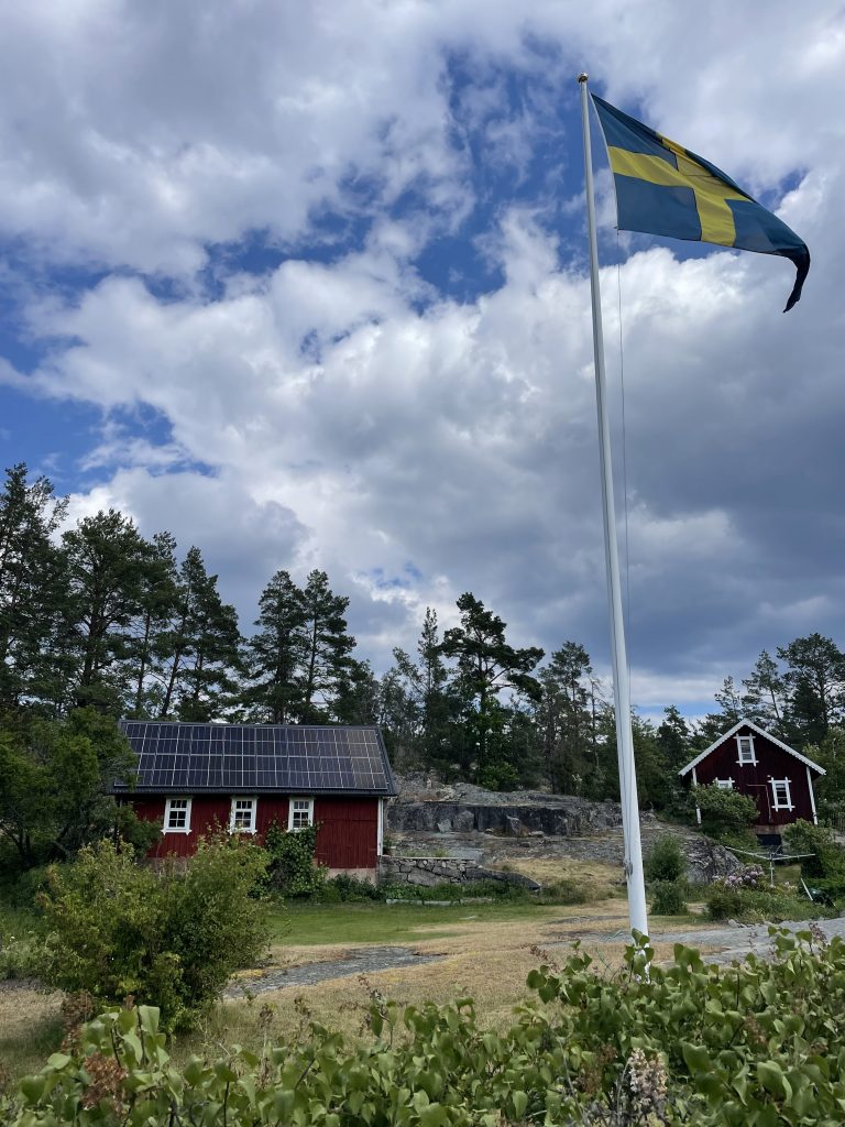 Die dunklen Wolken, die sich am Nachmittag am Himmel auftürmen, sehen schon sehr bedrohlich und voller Regen aus, ziehen aber knapp an uns vorbei. Nur einige wenige verirrte Regentropfen finden den Weg zu uns an Bord… es lohnt nichtmal, die Luken zu schließen. Zwei Tage Figeholm sind dann aber doch genug und so machen wir uns am schwedischen Nationalfeiertag (dem seit 1916 am 06. Juni gefeierten Tag der schwedischen Flagge) auf den Weg nach Klintemåla. Doch erst wandern noch schnell einige durchgelesen Krimis ins Bücherregal beim Hafenbüro „zur freien Verfügung“. Wir wollen früh los, denn auch viele der anderen Schiffe wollen weiter… und wir sind gerne VOR dem Pulk unterwegs, um dann an der nächsten Anlegestelle die bessere Platzauswahl zu haben. Wobei natürlich bei den hier nahezu unendlich vielen Möglichkeiten die Chance, dass sich die selben Schiffe am nächsten Anleger wiedertreffen, schon nicht sehr groß ist. Aber gut, der frühe Vogel und so… hat sich bewährt, und so machen wir zeitig die Leinen los.