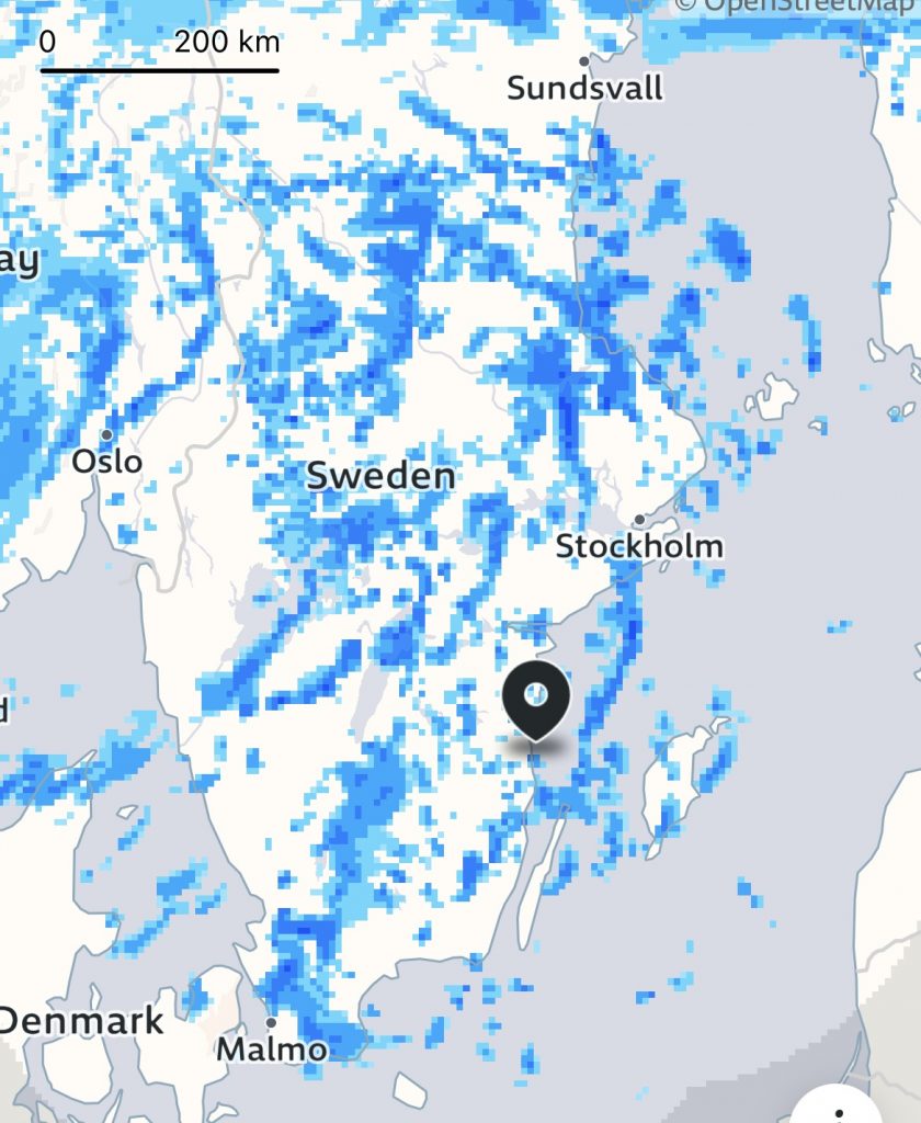 Da das Wetter nun doch etwas wechselhaft zu werden scheint, kommt abends (mal wieder) eine Diskussion bezüglich des weiteren Reiseverlaufs auf: wohin als nächstes… weiter oder zurück… wann drehen wir um? Für den nächsten Tag finden wir eine gute Lösung – ein Kursverlauf (weiter gen Norden!) mit diversen Möglichkeiten für einen Stopp unterwegs. Wir schlängeln uns durch enge Fahrwege zwischen den Felsen hindurch und freuen uns an der grandiosen Landschaft… bis am Horizont dunkle Wolken auftauchen. Und sie werden immer dunkler und bedrohlicher. Der Blick in das ziemlich genaue Regenradar des Norwegischen Wetterdienstes (YR) zeigt eine sich schnell vergrößernde Regenfront, und zwar genau auf unserem Kurs.