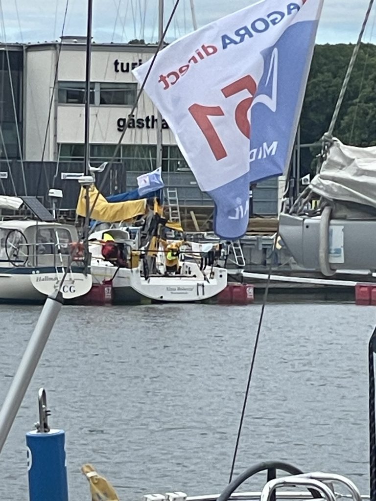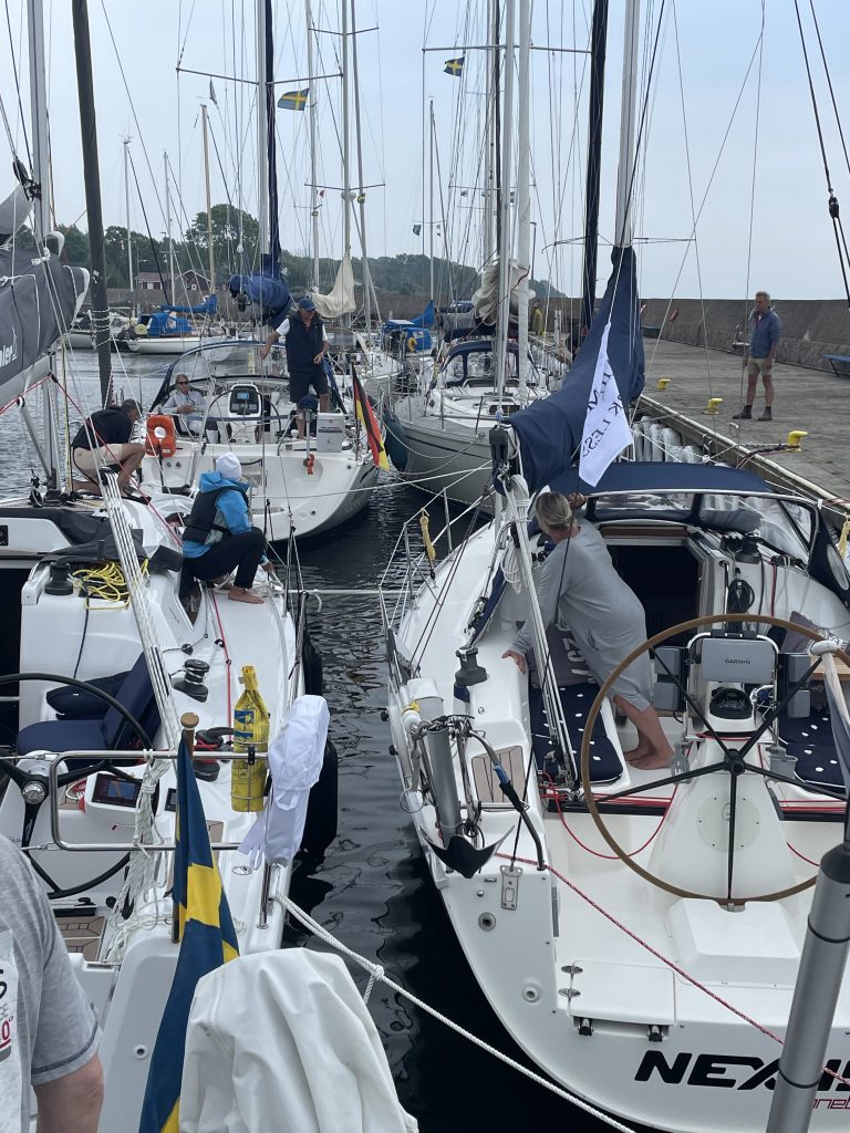 Spät abends kommen noch weitere Schiffe in den Hafen: frustrierte Teilnehmer der Midsummersail. Die Regatta wurde am 20.06. in Wismar gestartet (Ziel ist Törehamn, der nördlichste Punkt der Ostsee) und die Teilnehmer hatten die letzten 20 Stunden mit richtig heftigem Wind und hohen Wellen zu kämpfen. Gerade etwas kleinere Schiffe bzw. kleinere Crews oder Solosegler legen hier (oder auch schon in einem früheren Hafen) eine mehr oder weniger lange Erholungspause ein. Einige haben aber auch schon aufgegeben, denn die Wetterbedingungen sind in diesem Jahr bisher alles andere als spaßig. Es besteht kaum die Möglichkeit, die bestehenden Zeit-Rekorde (für schnellstes Schiff, kleinstes Schiff, kleinste Crew) zu verbessern. Aber Spaß machen soll die Regatta schließlich, denn die Teilnehmer sind ja alles keine Profis, sondern „nur“ ambitionierte Fahrtensegler.