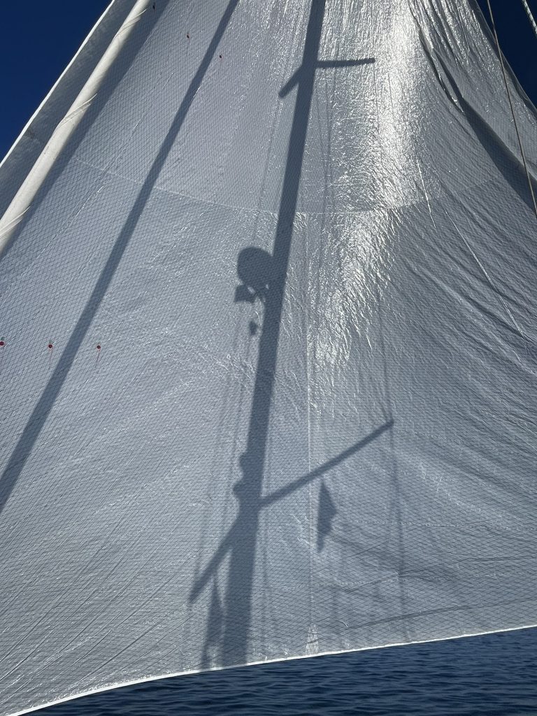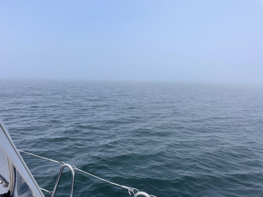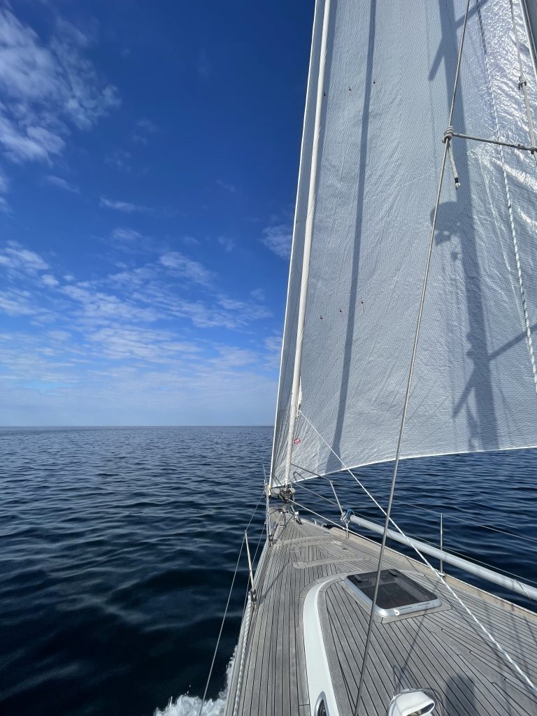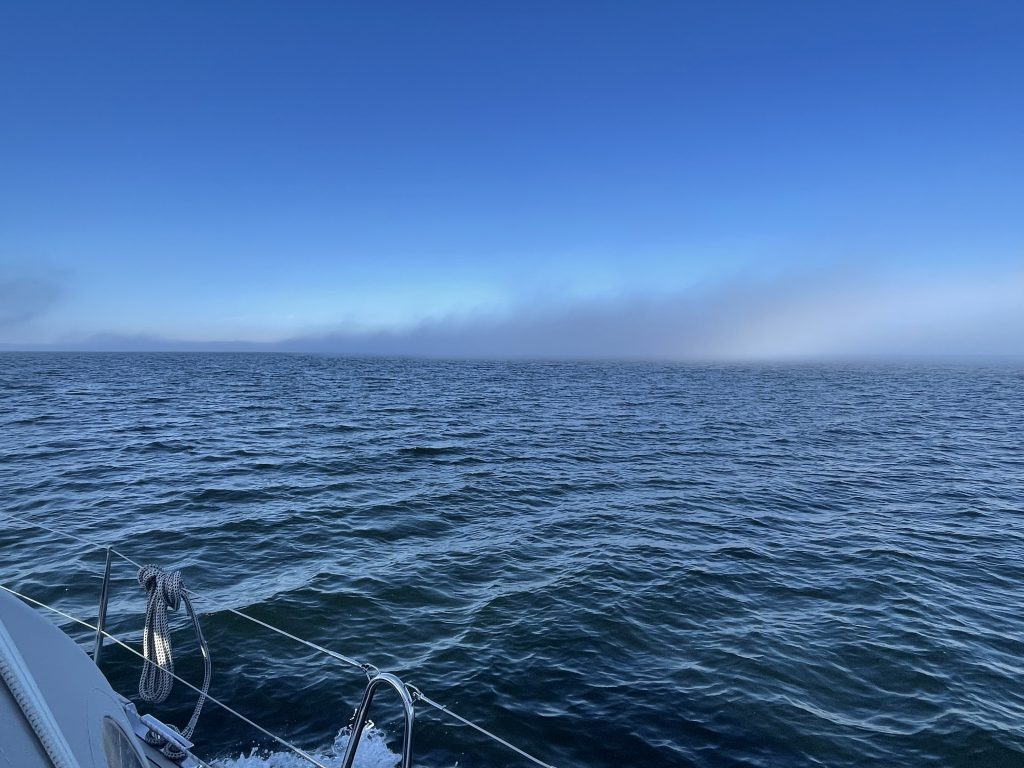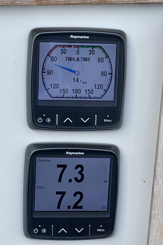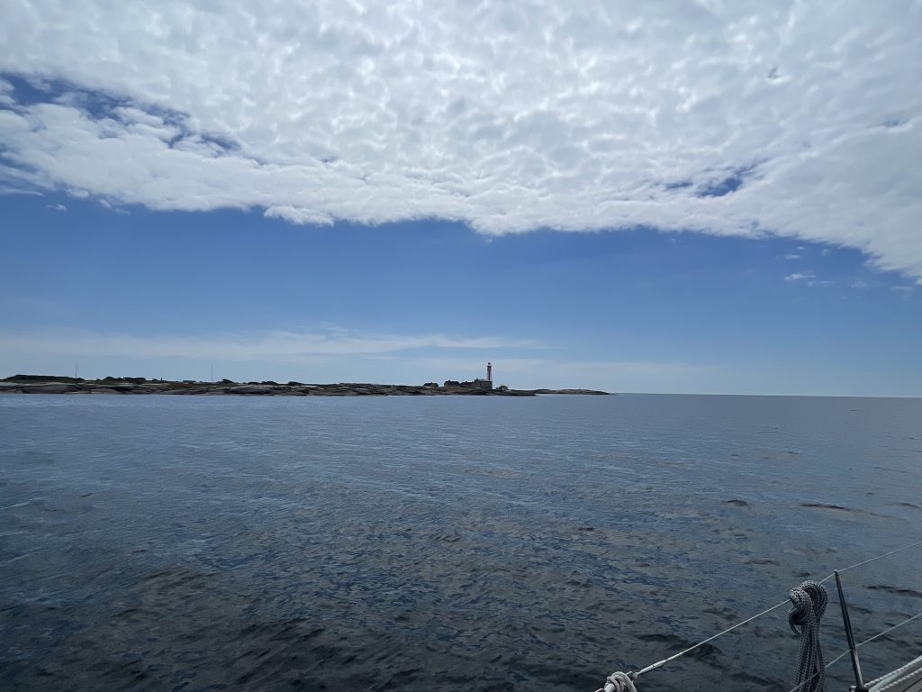 Am Dienstag (25.06.24) geht es dann endlich weiter gen Süden. Wir wollen nochmal einige Inseln besuchen… größere und kleinere. Im morgendlichen Dunst wird erst noch getankt, dann führt uns unser Kurs an die Südspitze Ölands. Unterwegs dann plötzlich ziemlich schlechte Sicht. Schon seit einiger Zeit können wir das Festland nicht mehr sehen, da es von einer dichten Nebelwand verdeckt wird. Öland hingegen zeigt sich noch… bis wir dann doch mitten im Nebel stecken. Sicht keine 50m. Ein seltsames Gefühl. Nach oben blauer Himmel – die Sonnenstrahlen schaffen es aber leider nicht, den Nebel aufzulösen. So kommt erneut unser Radar zum Einsatz. Es zeigt sich mal wieder, dass es eine gute Unterstützung der Navigationsgeräte darstellt und die Sicherheit auf See extrem erhöht: so werden wir gewarnt, dass ein Schiff direkt auf uns zukommt und dann später dicht an uns vorbeifährt, obwohl wir es überhaupt nicht sehen. Wir ahnen es nur… oder ist die entfernte Schiffssiluette vielleicht nur Einbildung?