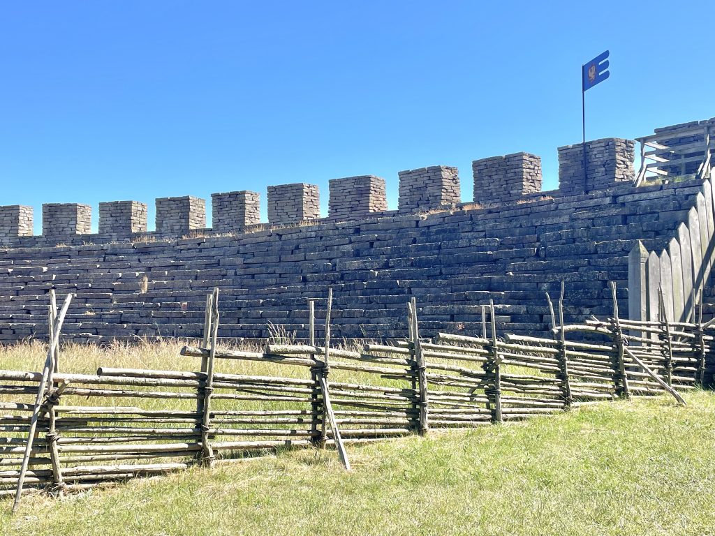 Eketorps Borg ist eine Art archäologisches Freilichtmuseum und bisher die einzige der 19 bekannten frühgeschichtlichen Burgen auf Öland, die erforscht wurden. Nach den umfangreichen Ausgrabungen in den 1960er und 70er Jahren wurde Eketorps Borg mit Gebäuden aus verschiedenen Epochen vollständig und den unterschiedlichen Epochen entsprechend restauriert und aufgebaut. Auch die hohe Ringmauer ist bis ins Detail authentisch. Wir schlendern einige Zeit durch die Anlage und lassen die Enge und Einfachheit auf uns wirken.