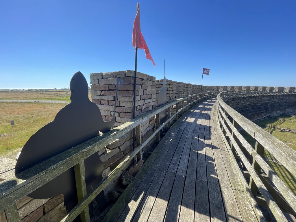 Nach zwei Stunden ist der Spuk glücklicherweise vorbei und wir können bei strahlender Sonne in Grönhögen einlaufen. Nach Aufräumen und kurzer Verschnaufpause machen wir uns – per Elektro-Roller – auf den Weg nach Eketorp, etwa 6km entfernt. Hier machen wir auf Anraten von Ulli mal etwas in Kultur und besichtigen die Burg Eketorp, eine vorgeschichtliche Ringwallanlage, die auf den Fundamenten der ursprünglichen Anlage vollständig restauriert wieder aufgebaut wurde.
