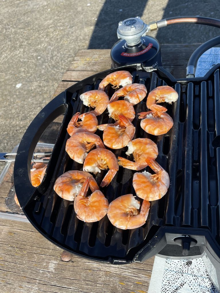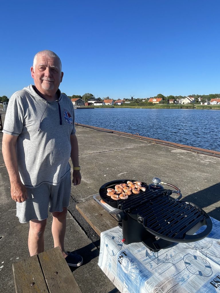 Und da auch Roller fahren hungrig macht, muss am Abend mal wieder unser kleiner Gasgrill ran. Danach heißt es: Ruhe und Umgebung genießen. Kein Trubel, keine laute Musik von umherfahrenden Motorbooten oder sonstige städtische Geräusche (wie in Kalmar) stören die friedliche Hafen-Atmosphäre. Nur ein Bootsnachbar hat wohl Probleme mit seinem Motor (sowas gibt es? 🥴) und versucht, ihn ans Laufen zu bringen. Vergeblich. Aber wenigstens probiert er’s erst nach Sonnenuntergang… dann ist eh genug mit Idylle und auch spät genug für die Nachtruhe. Wir verschwinden unter Deck.